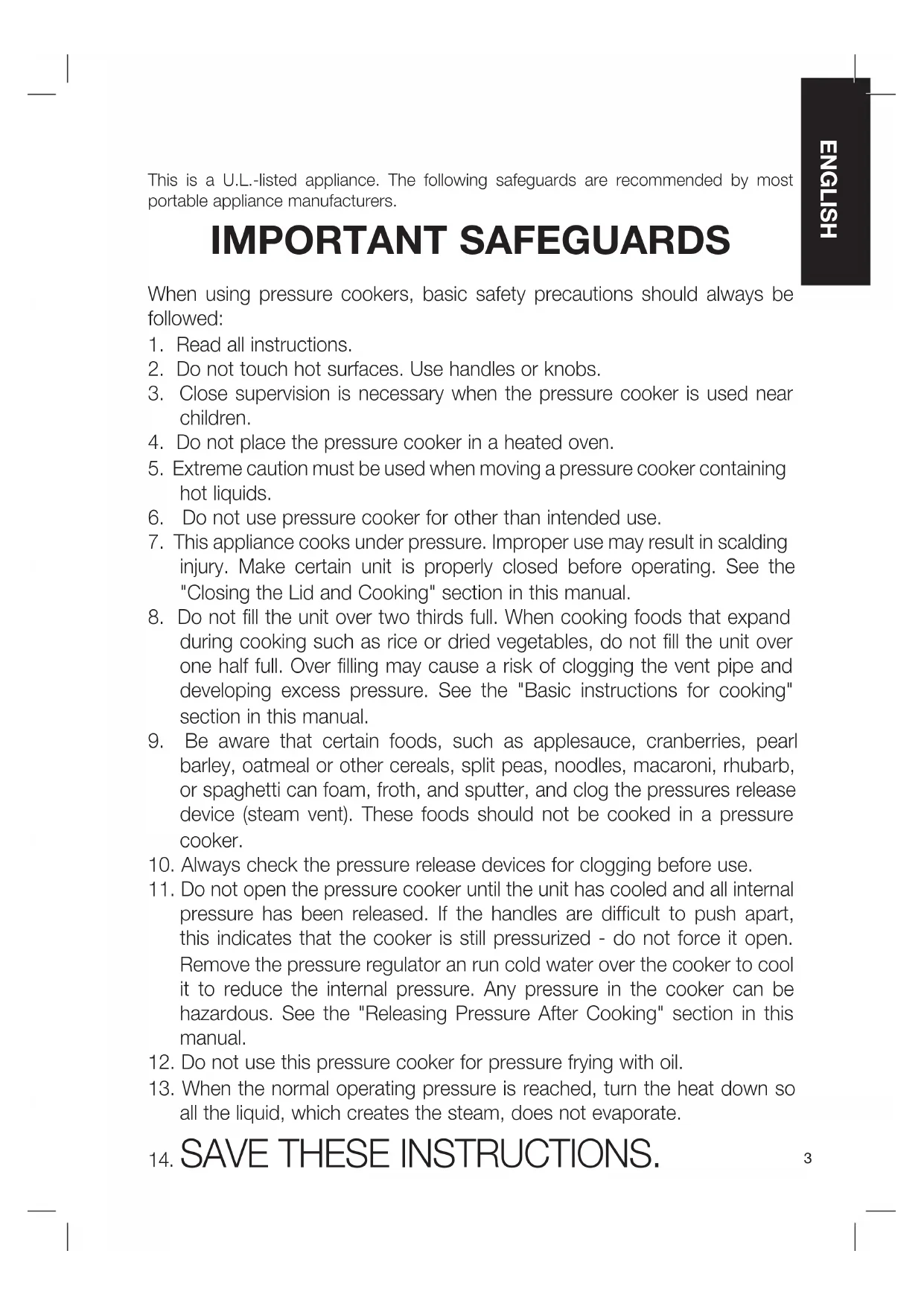 SAVE THESE INSTRUCTIONS. This is a U.L.-listed appliance. The following safeguards are recommended by most portable appliance manufacturers. IMPORTANT SAFEGUARDS ENGLISH4