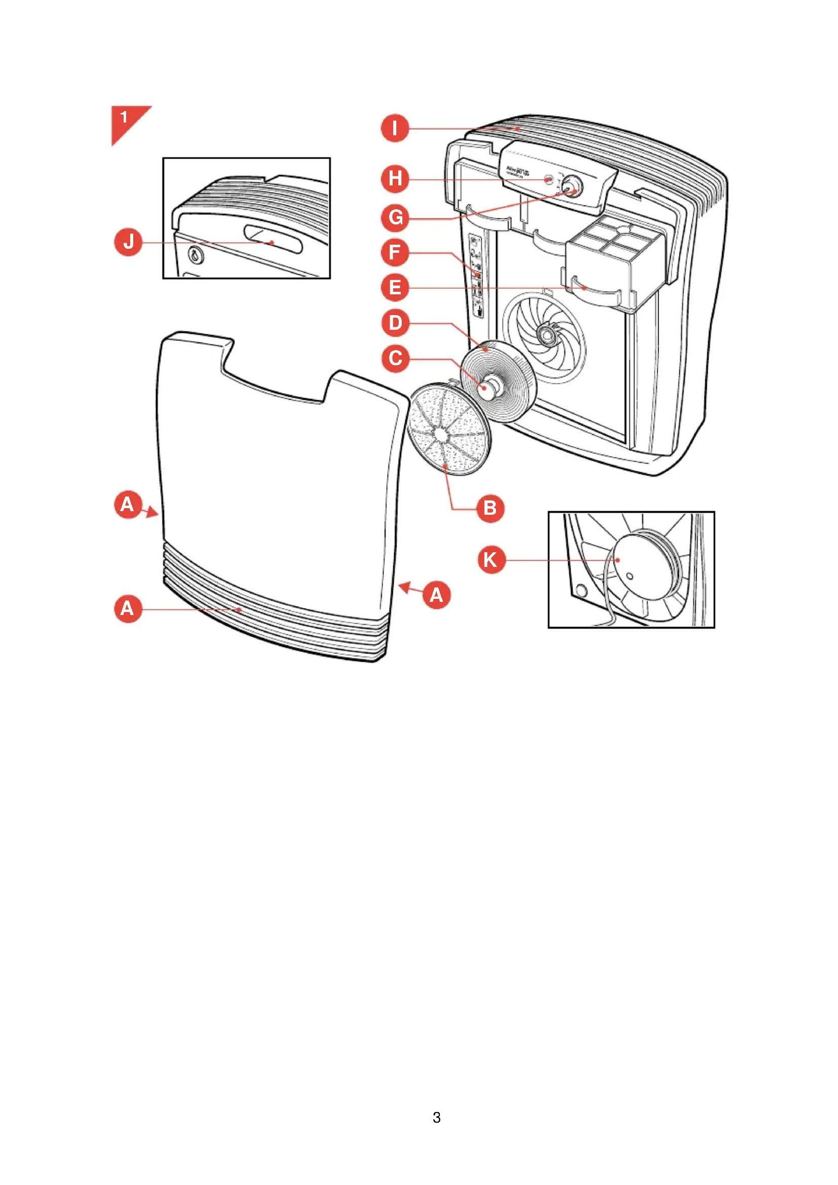 - For quick air cleaning, set the speed control (G) to the turbo setting and switch to speed 1 or 2 after approximately 30 minutes.