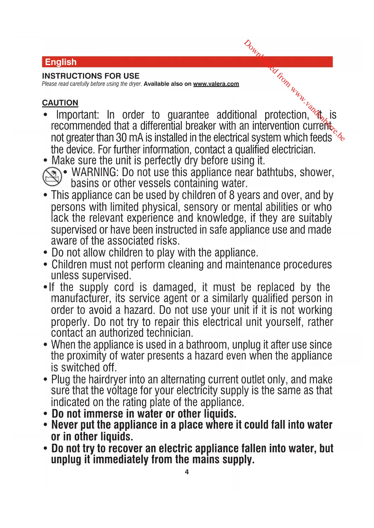 Please read carefully before using the dryer. Available also on www.valera.com CAUTION