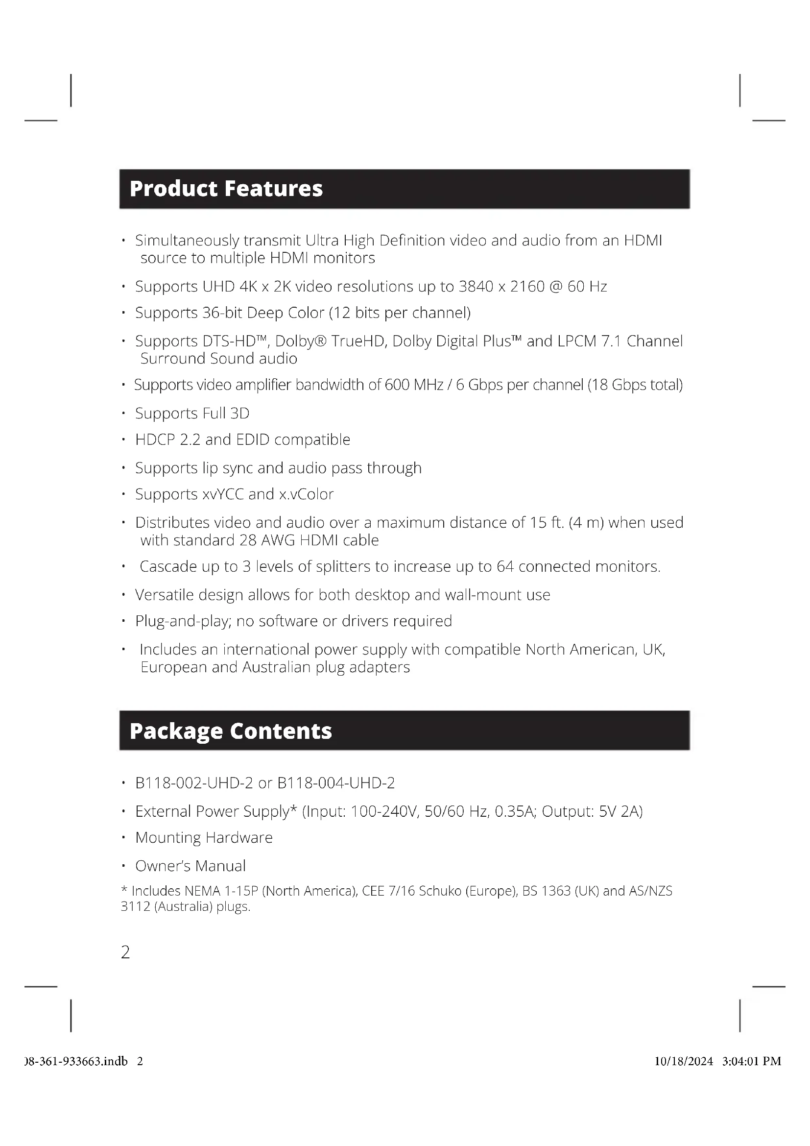 Find the device manual for free B118002UHD2 Tripp Lite in PDF.