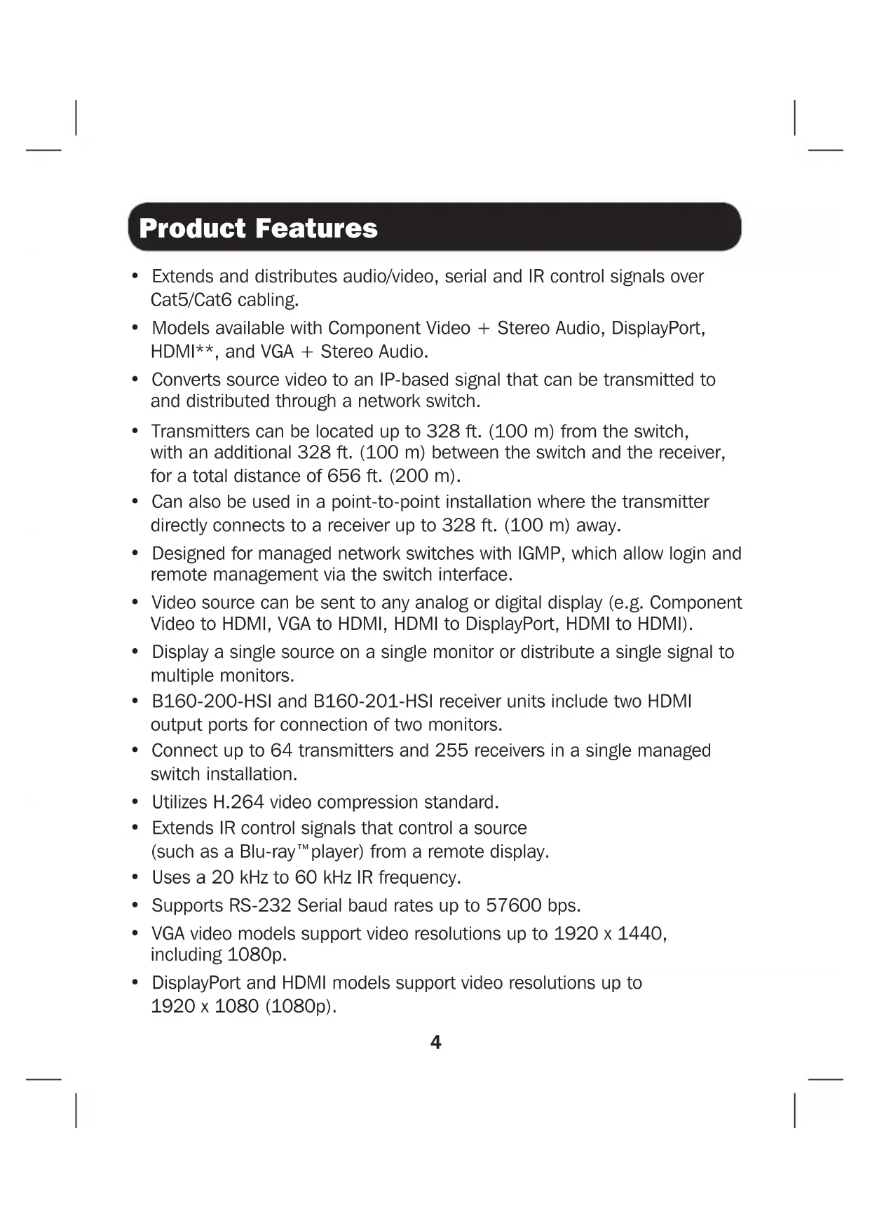 - B160-Series Audio/Video over IP Extenders are designed for use with a dedicated network switch. Connecting IP Extenders to a switch used with other networking equipment will result in degraded or non-functional product performance.