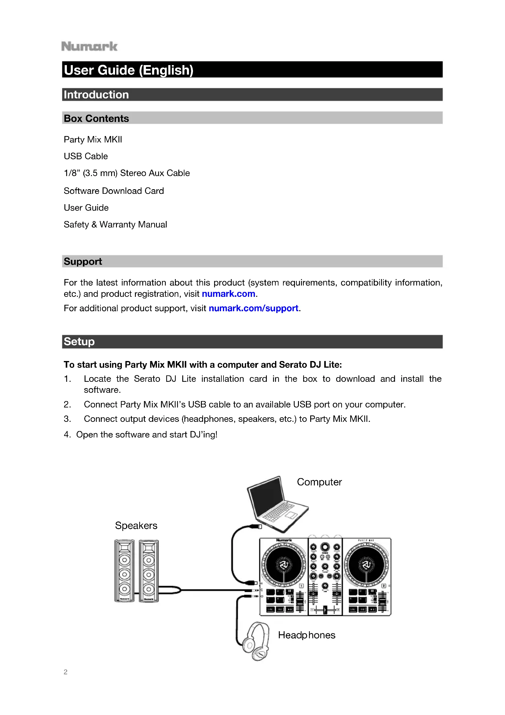 Support For the latest information about this product (system requirements, compatibility information, etc.) and product registration, visit numark.com. For additional product support, visit numark.com/support.