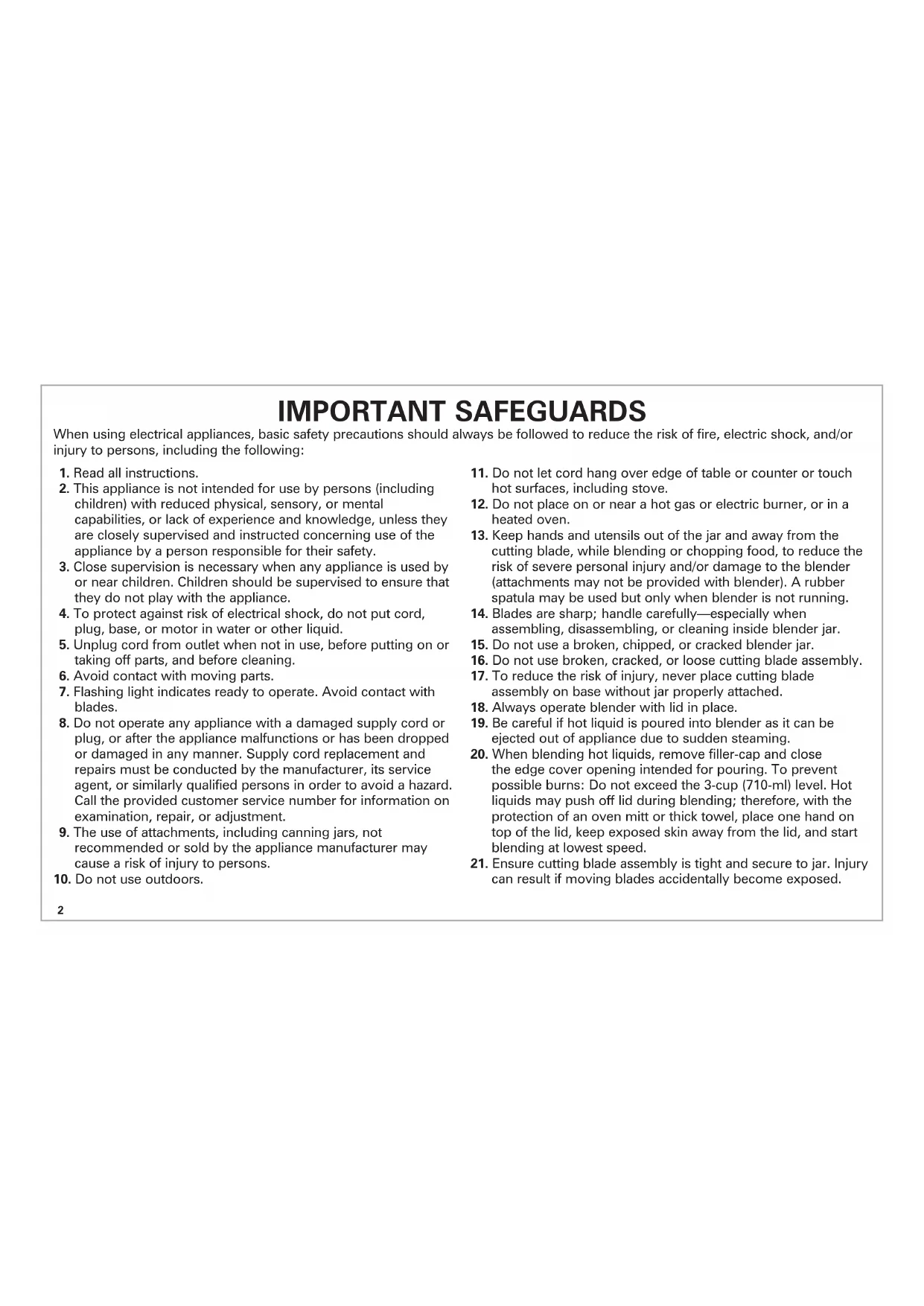 19. Be careful if hot liquid is poured into blender as it can be