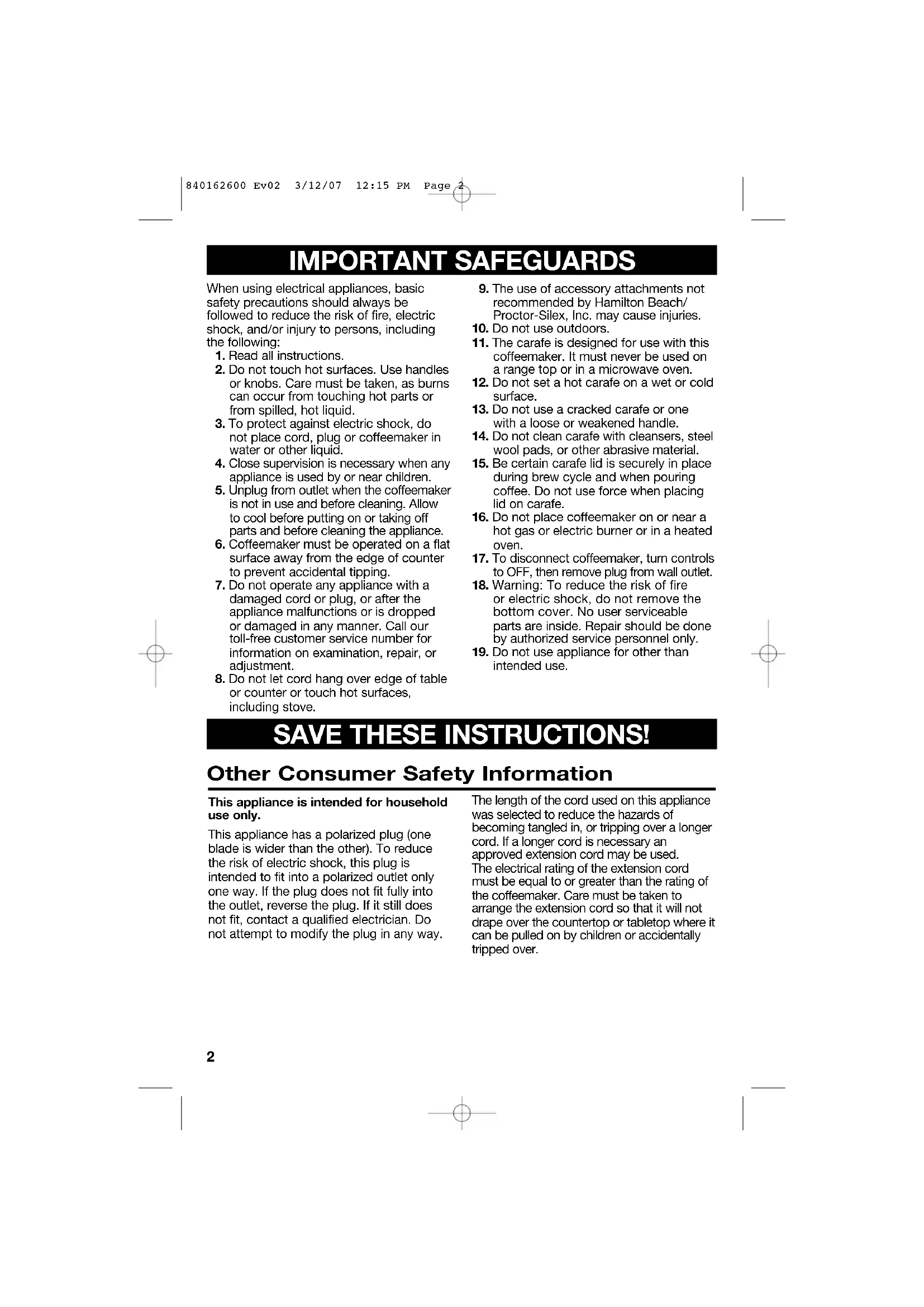 - Do not place hot carafe on cool or wet surface. Allow to cool before washing or adding liquids.