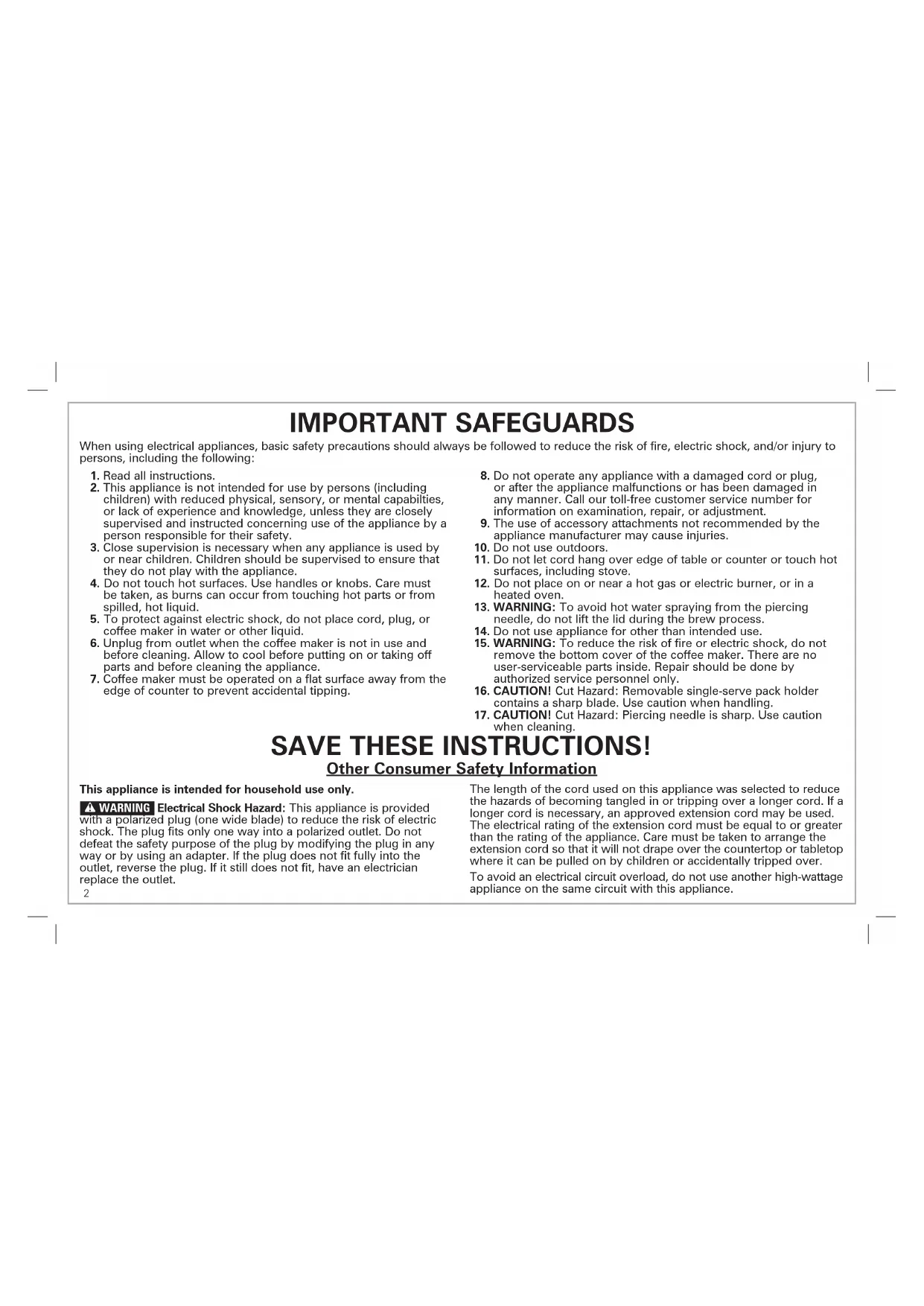 16. CAUTION! Cut Hazard: Removable single-serve pack holder
