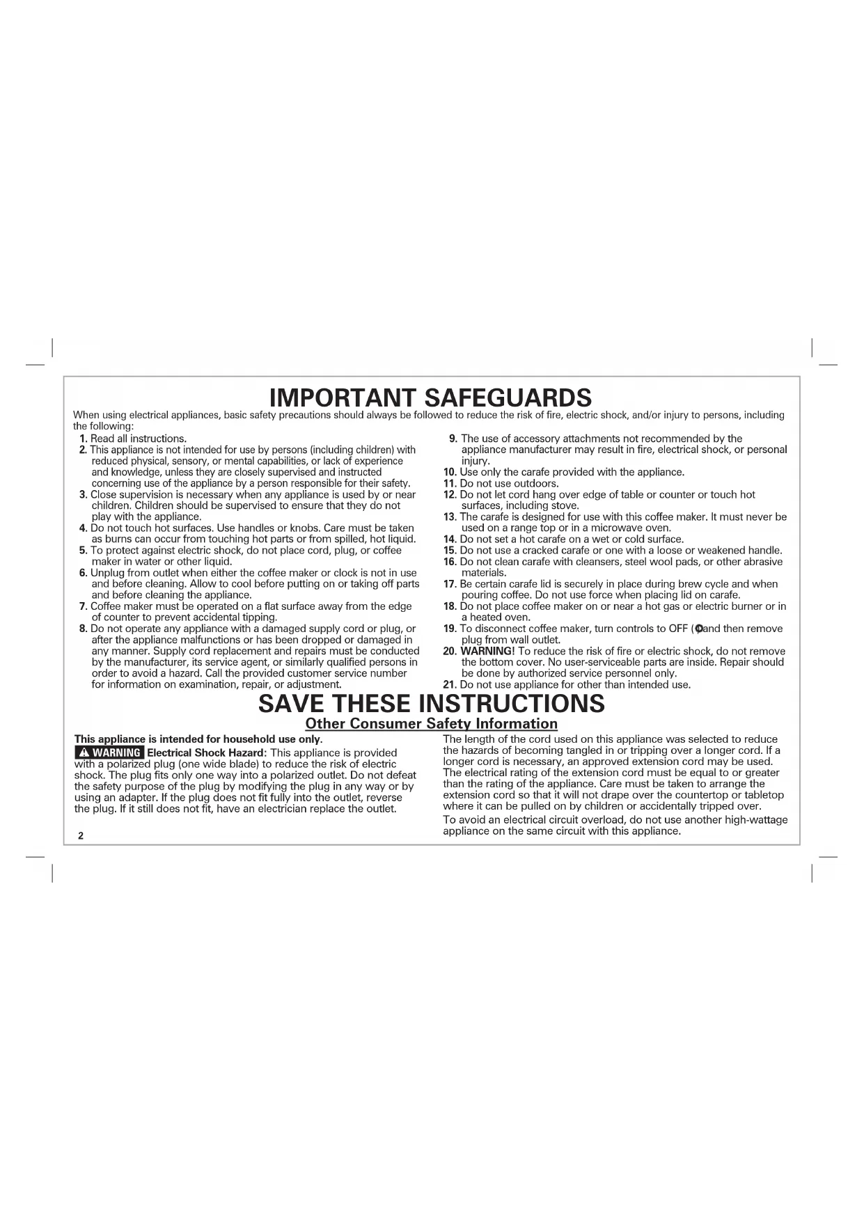 15. Do not use a cracked carafe or one with a loose or weakened handle.