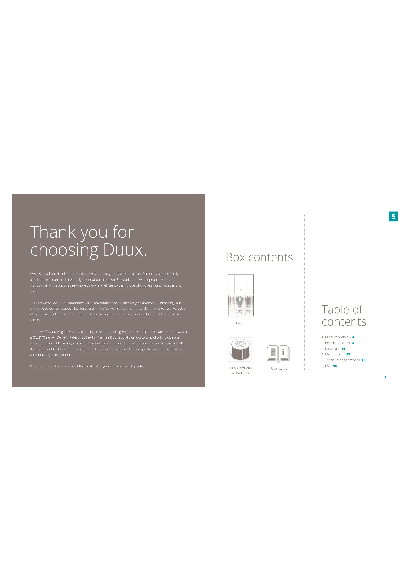 Download the instructions for your Air purifier in PDF format for free! Find your manual Bright - DUUX and take your electronic device back in hand. On this page are published all the documents necessary for the use of your device. Bright by DUUX.
