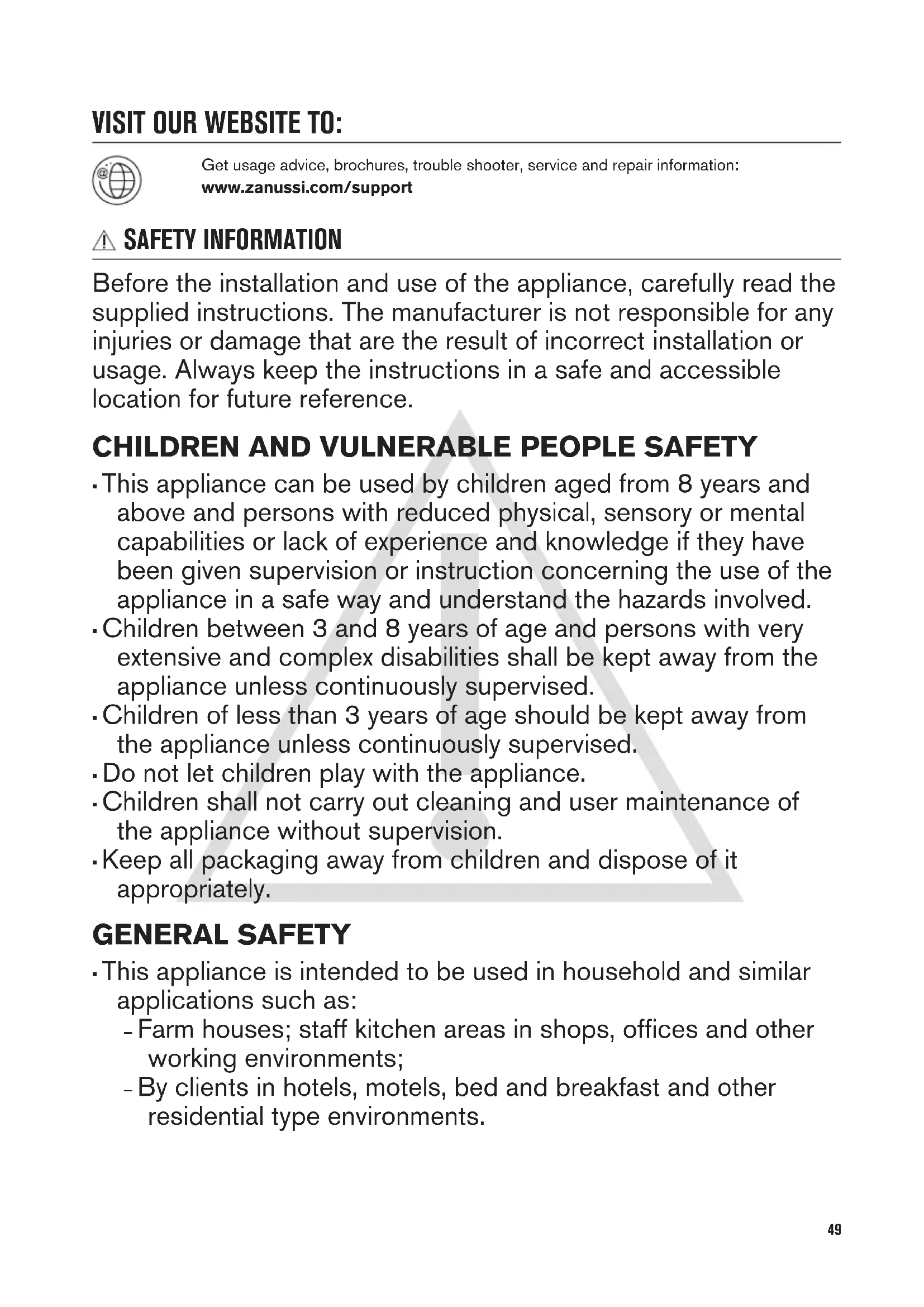 USER MANUAL ZCAN38EW1 ZANUSSI