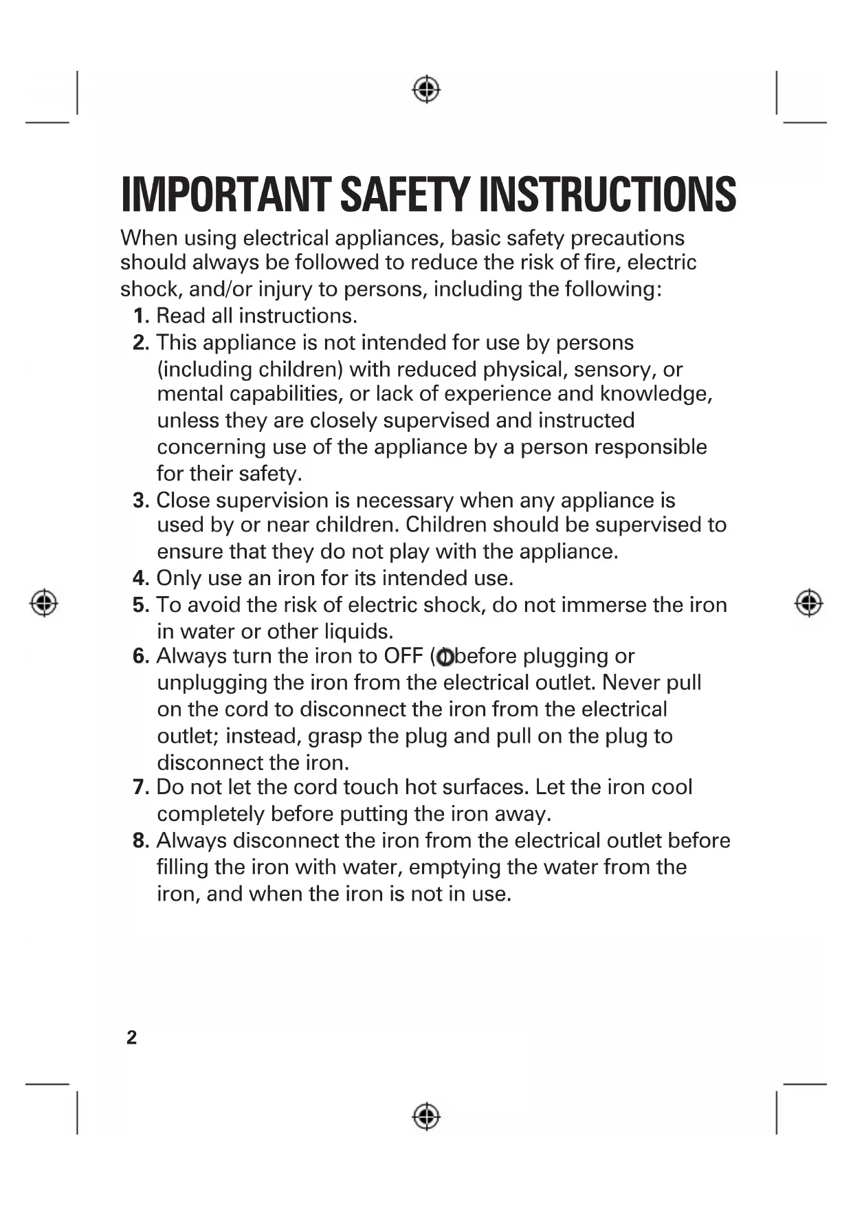 8. Always disconnect the iron from the electrical outlet before