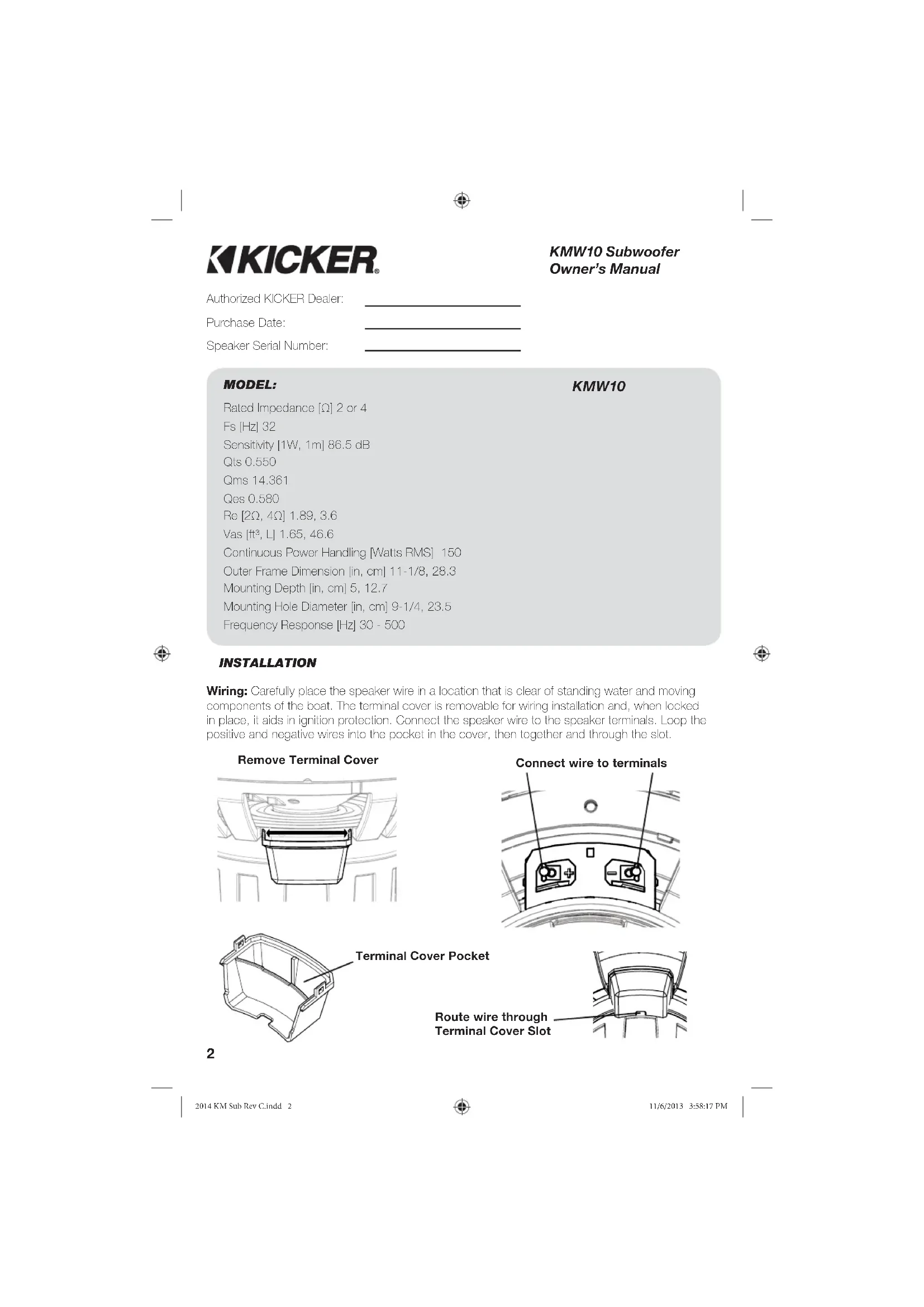 Download the instructions for your Subwoofer in PDF format for free! Find your manual KMW102LC - KICKER and take your electronic device back in hand. On this page are published all the documents necessary for the use of your device. KMW102LC by KICKER.