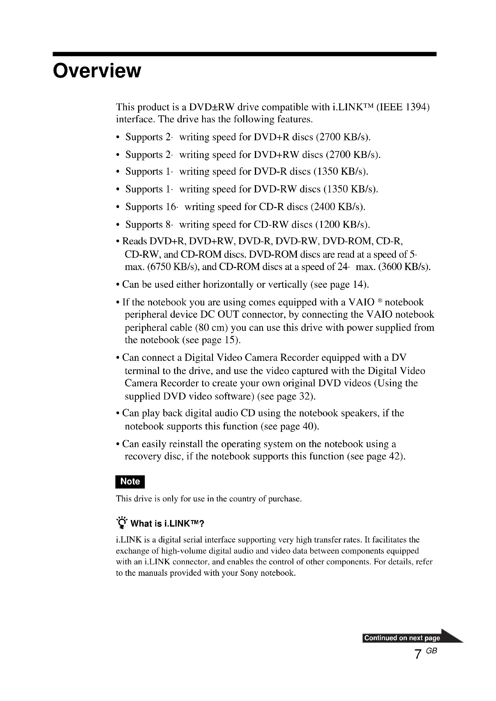 | →Some types of notebook cannot exchange data with the drive. For details, see “Compatible notebooks” (page 8) and the manuals provided with your Sony notebook. | |
