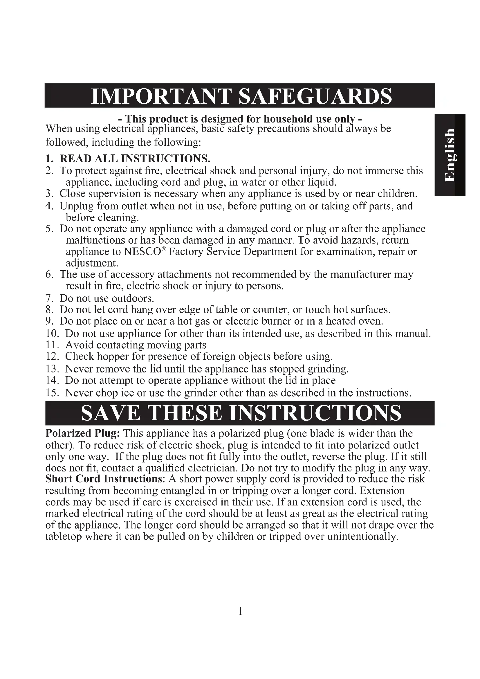 BG 13 - Coffee grinder Nesco - Free user manual and instructions