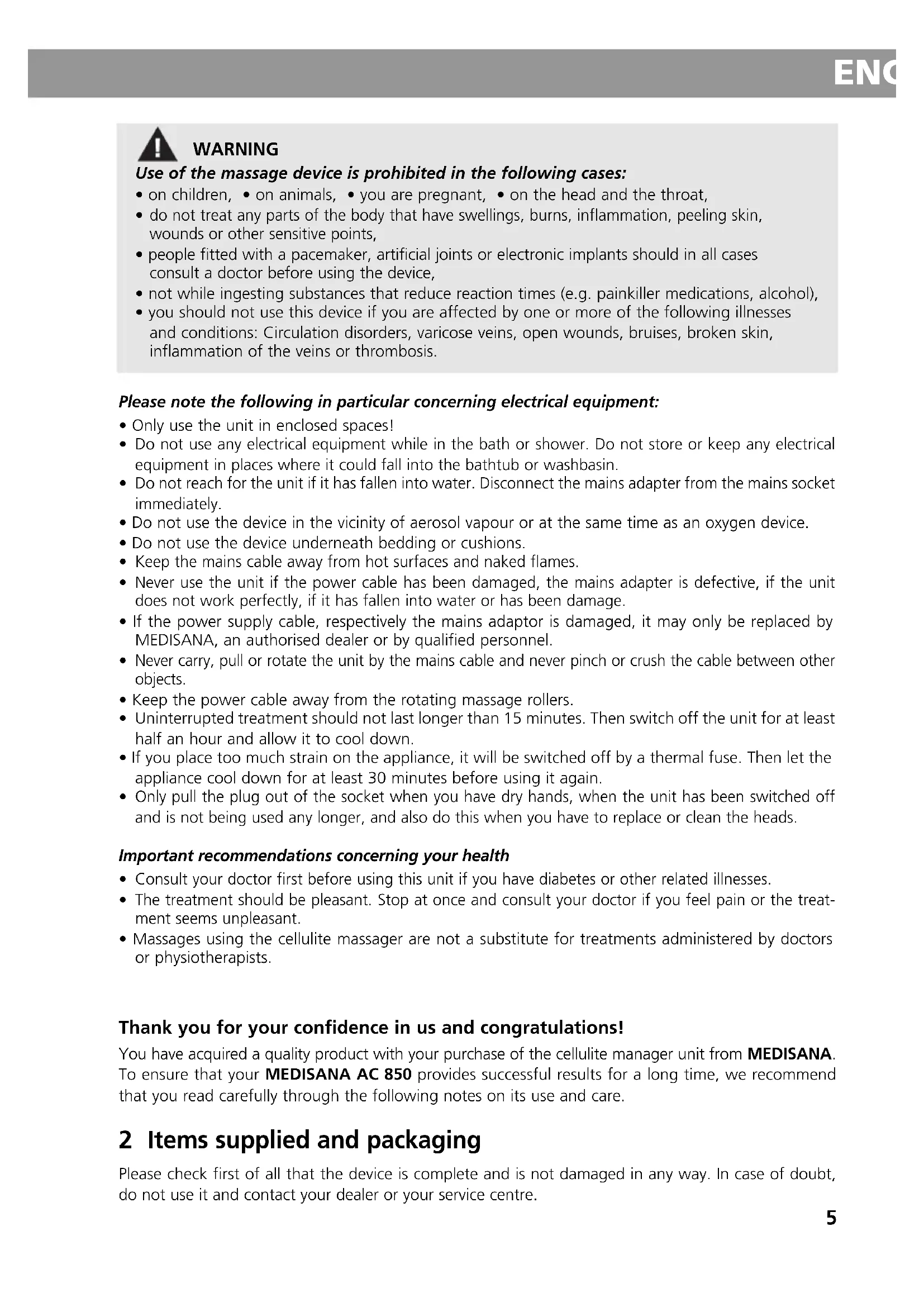 - Massages using the cellulite massager are not a substitute for treatments administered by doctors or physiotherapists. Thank you for your confidence in us and congratulations! You have acquired a quality product with your purchase of the cellulite manager unit from MEDISANA. To ensure that your MEDISANA AC 850 provides successful results for a long time, we recommend that you read carefully through the following notes on its use and care.
