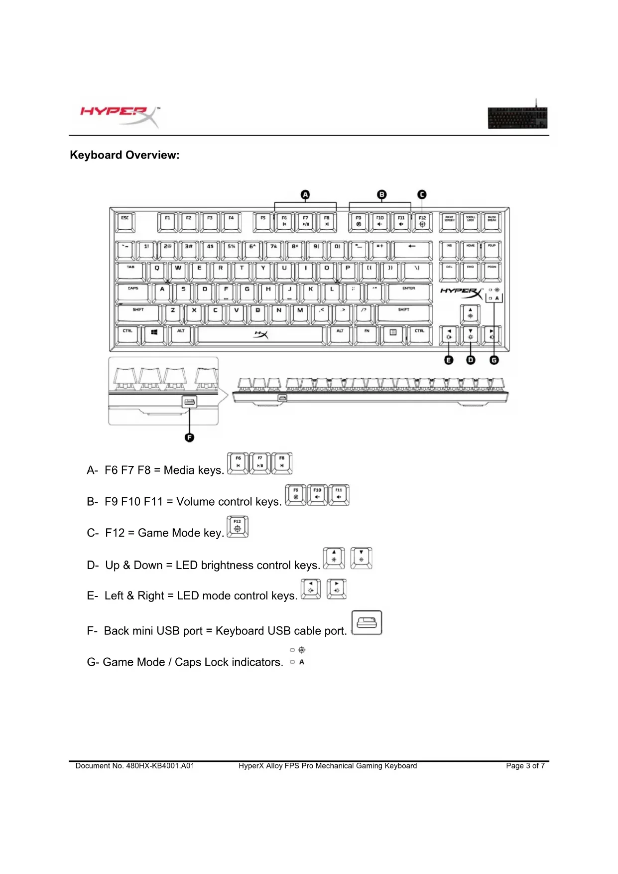 Switch between the LED backlight modes with the following keys / .Document No. 480HX-KB4001.A01 HyperX Alloy FPS Pro Mechanical Gaming Keyboard Page 6 of 7