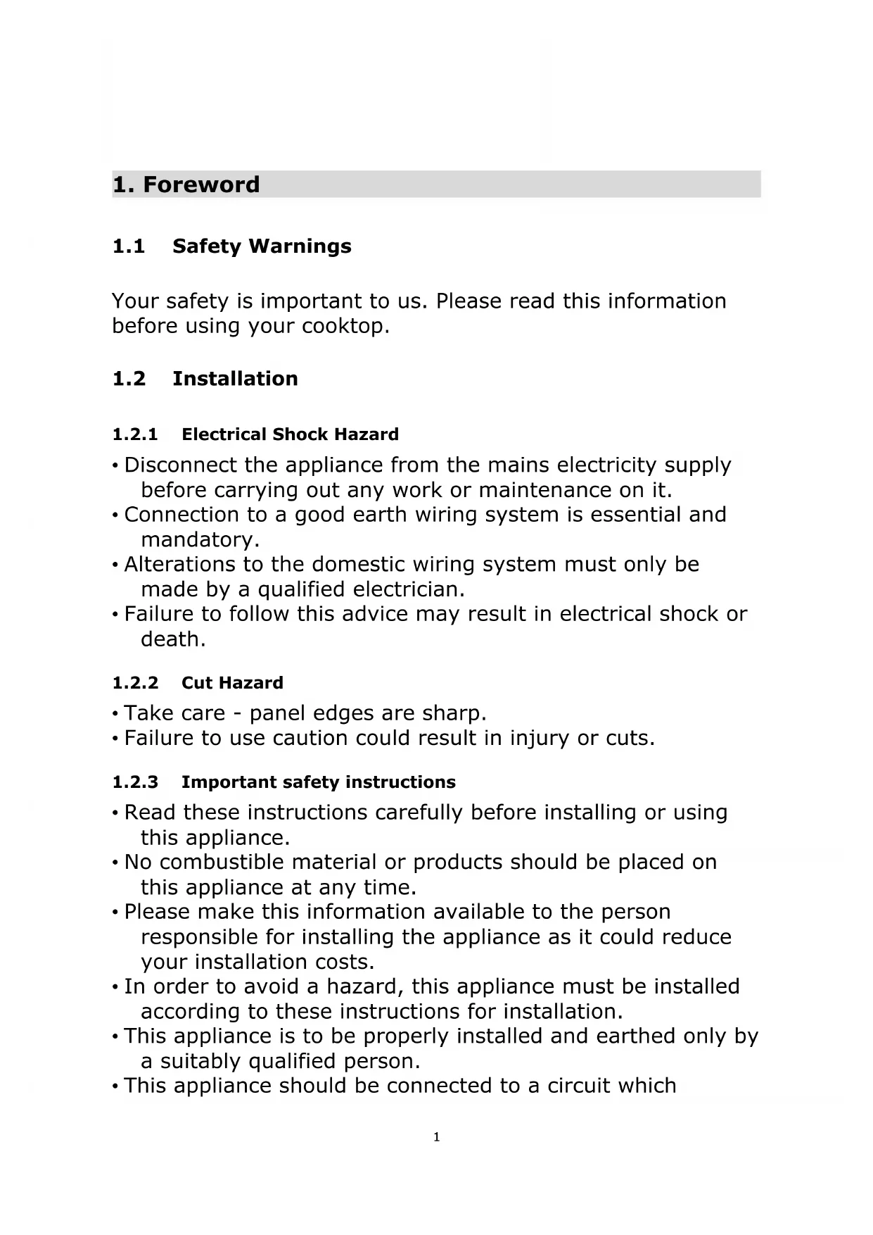 - The appliance is not intended to be operated by means of an external timer or separate remote-control system.5 Congratulations on the purchase of your new Ceramic Hob. We recommend that you spend some time to read this Instruction / Installation Manual in order to fully understand how to install correctly and operate it. For installation, please read the installation section. Read all the safety instructions carefully before use and keep this Instruction / Installation Manual for future reference.