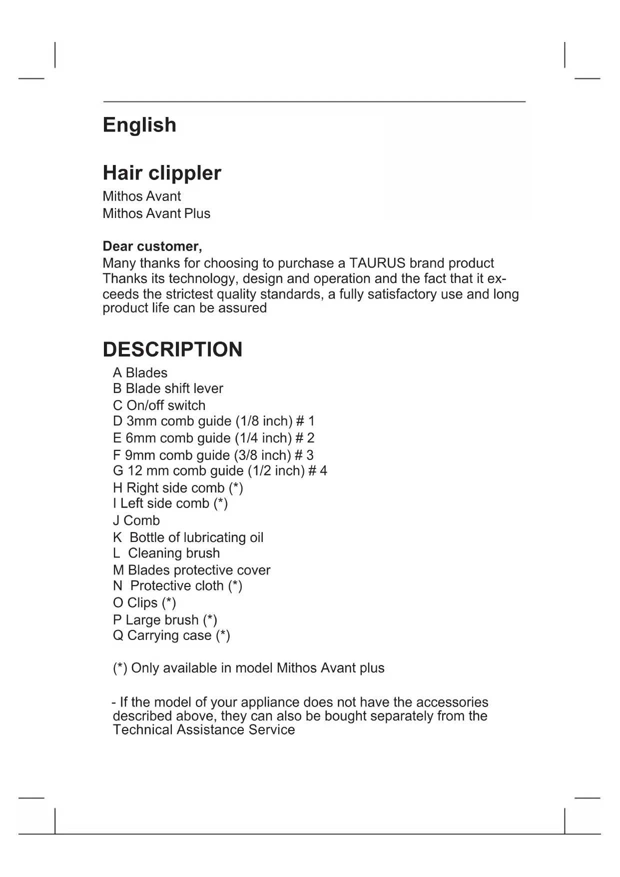 Mithos Avant Plus - Beard trimmer TAURUS - Free user manual and instructions
