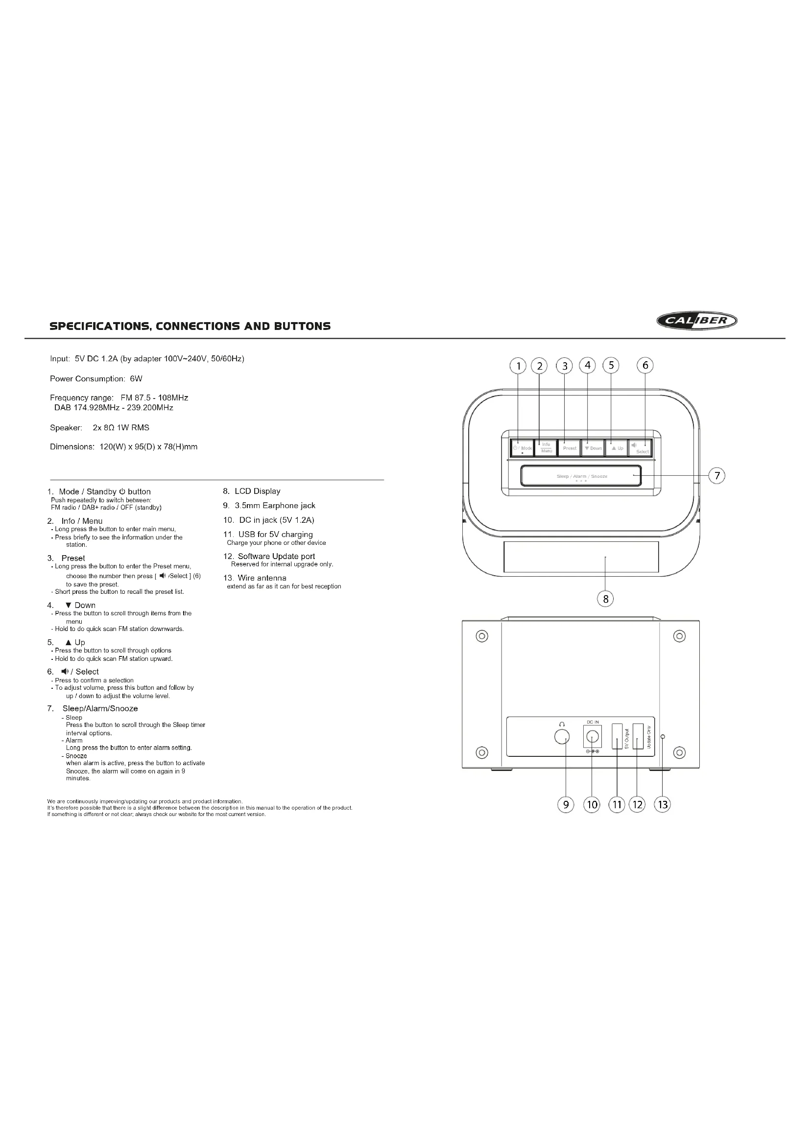 Download the instructions for your Alarm clock radio in PDF format for free! Find your manual HCG 009DAB - CALIBER and take your electronic device back in hand. On this page are published all the documents necessary for the use of your device. HCG 009DAB by CALIBER.