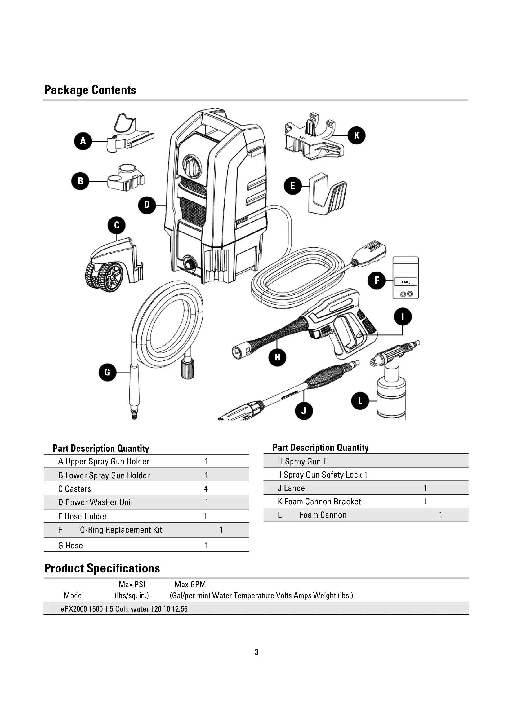 | D Power Washer Unit | 1 |