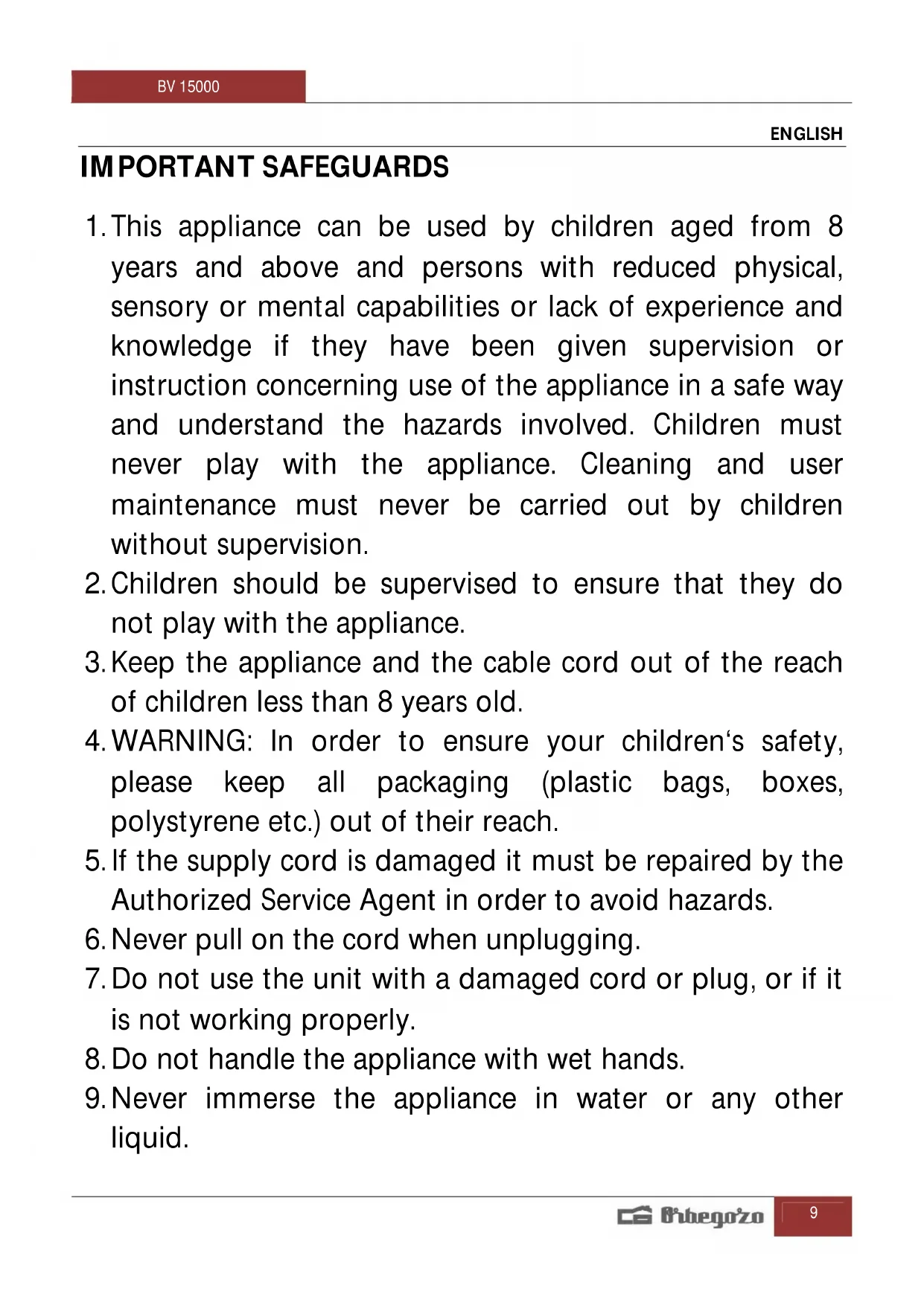 Find the device manual for free BV 15000 Orbegozo in PDF.