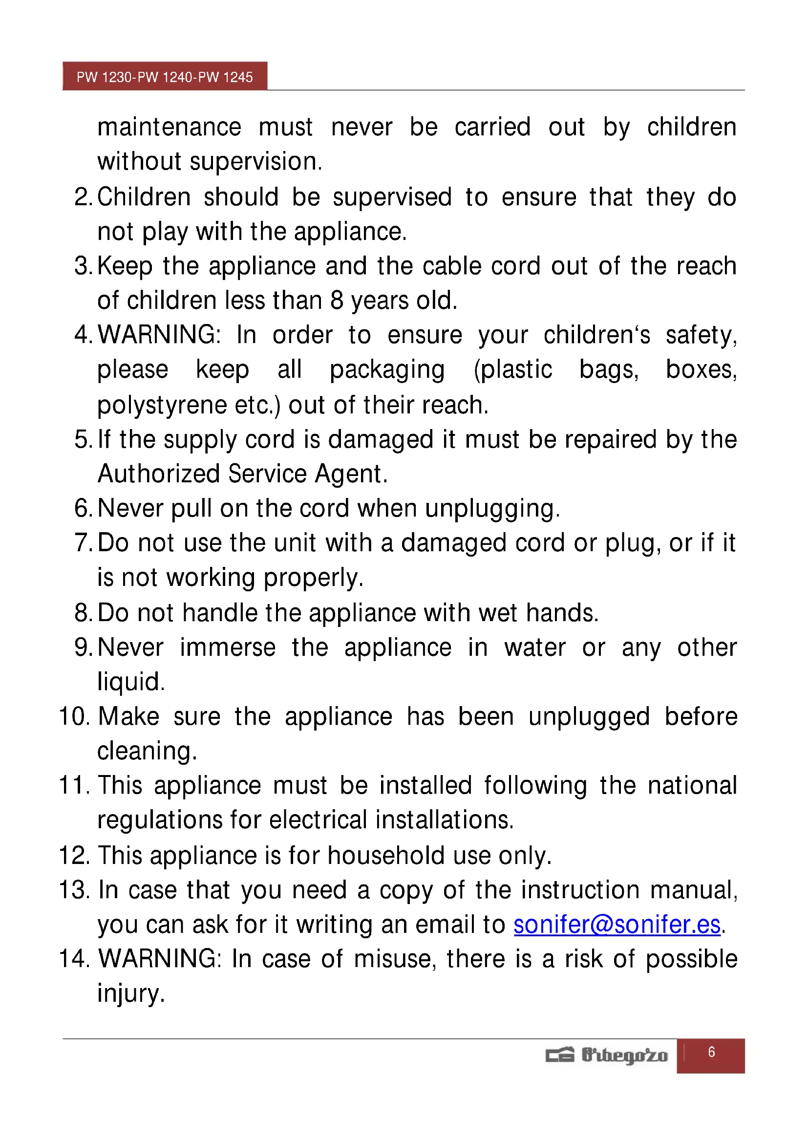 Find the device manual for free PW 1240 Orbegozo in PDF.