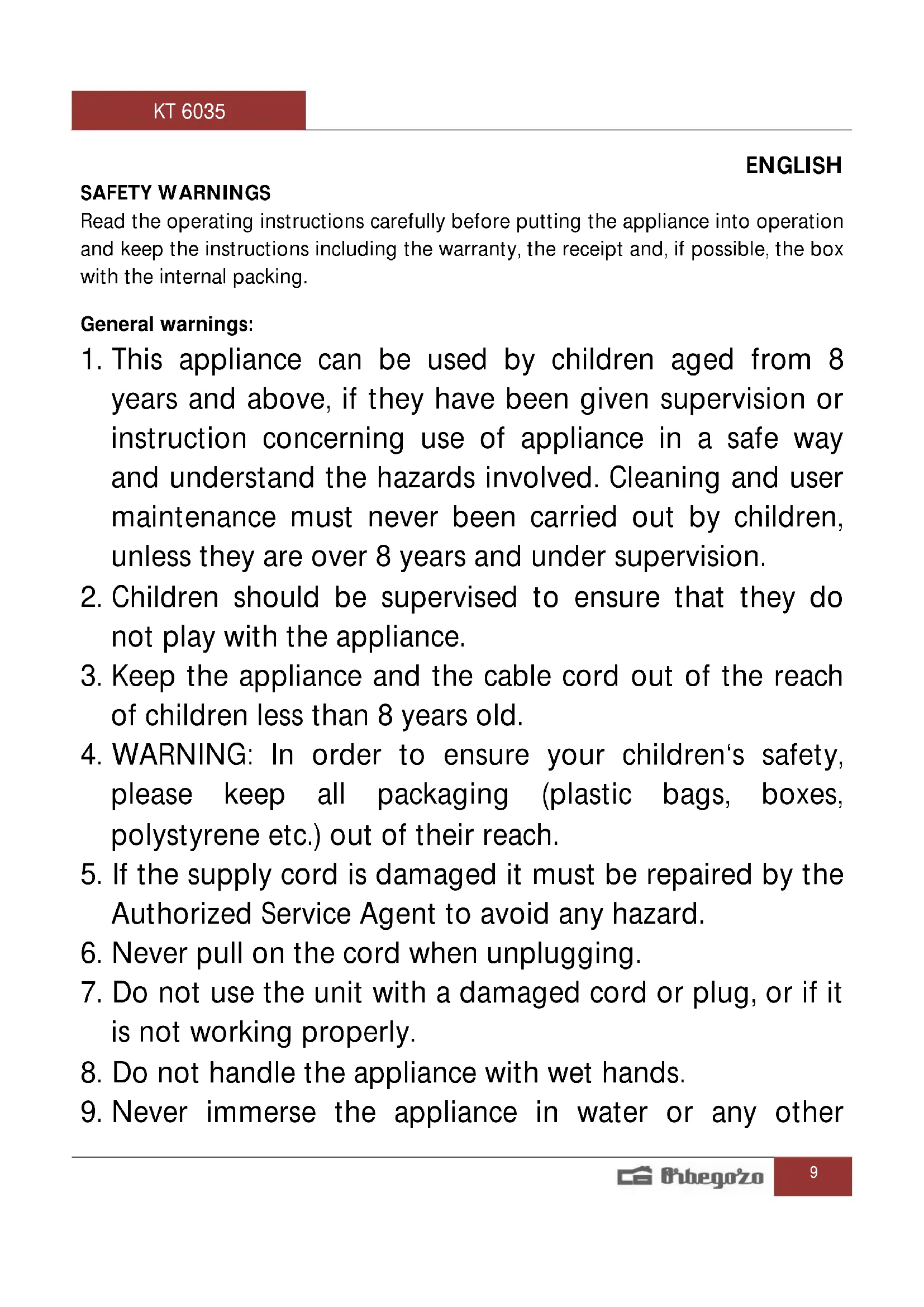 Find the device manual for free KT 6035 Orbegozo in PDF.