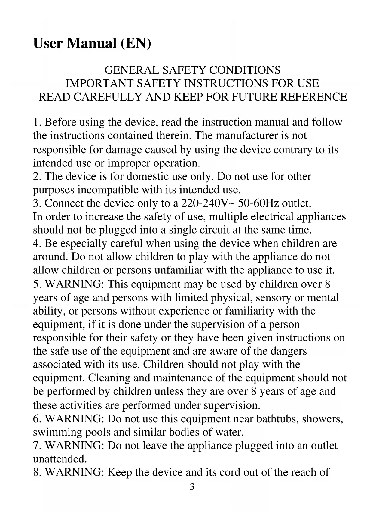 8. WARNING: Keep the device and its cord out of the reach of4