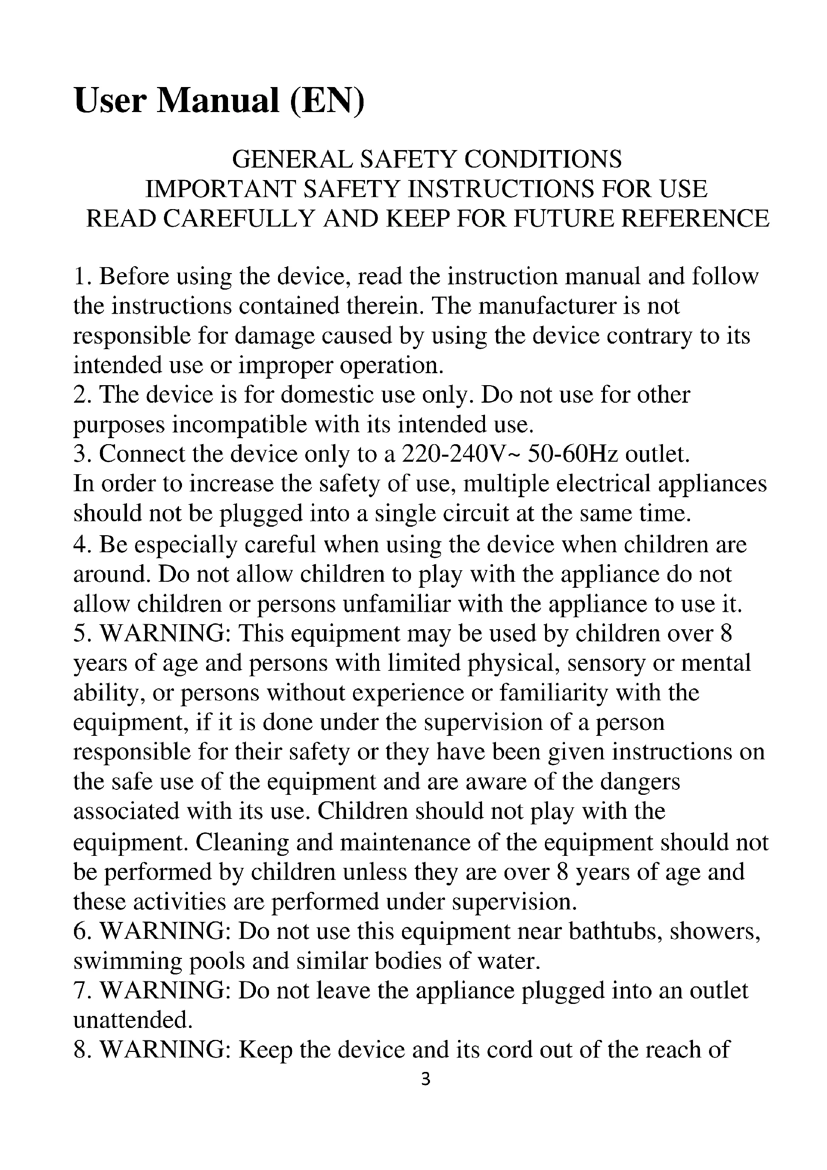 3. Connect the device only to a 220-240V~ 50-60Hz outlet.