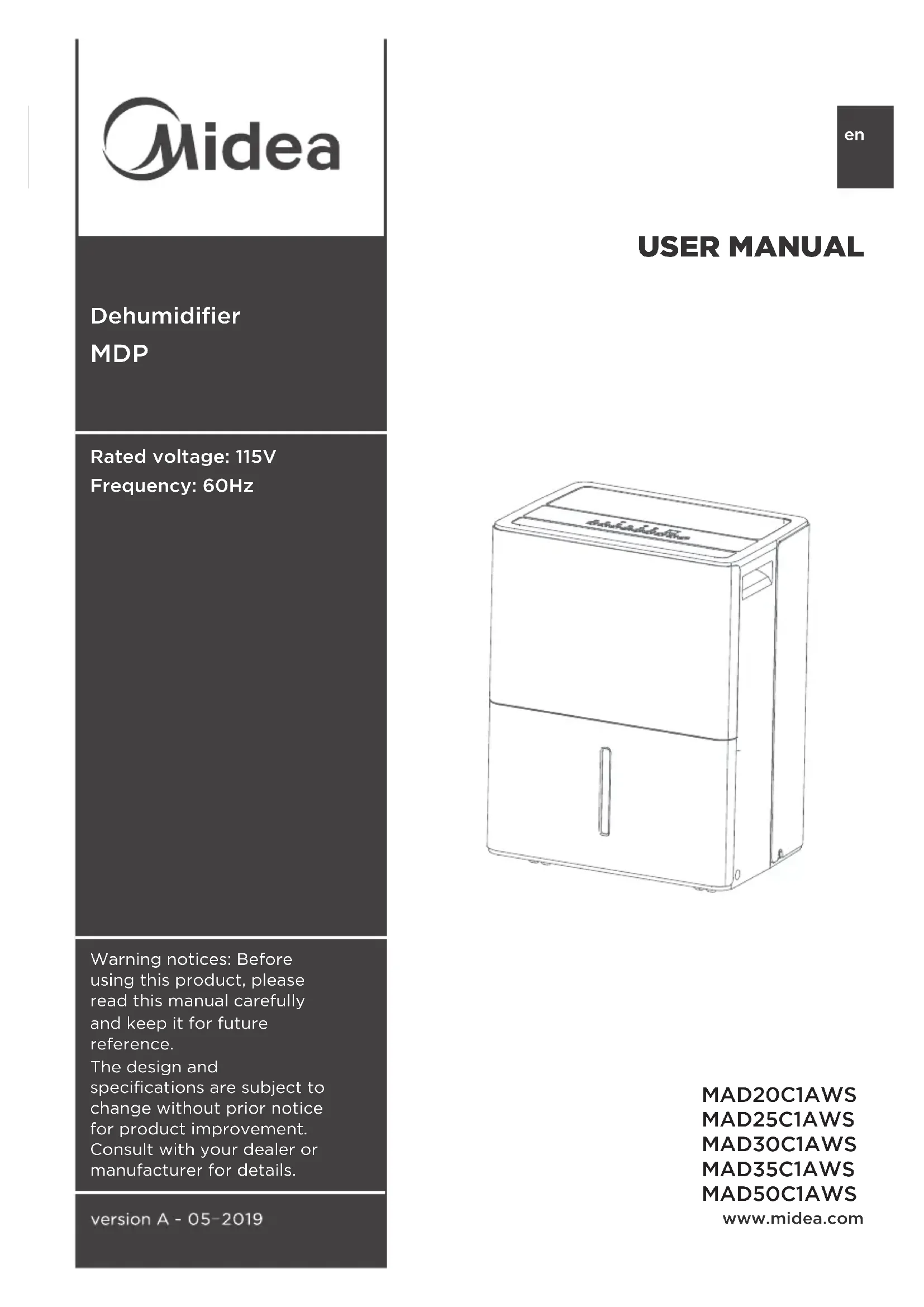 MAD50C1AWS - Dehumidifier MIDEA - Free user manual and instructions