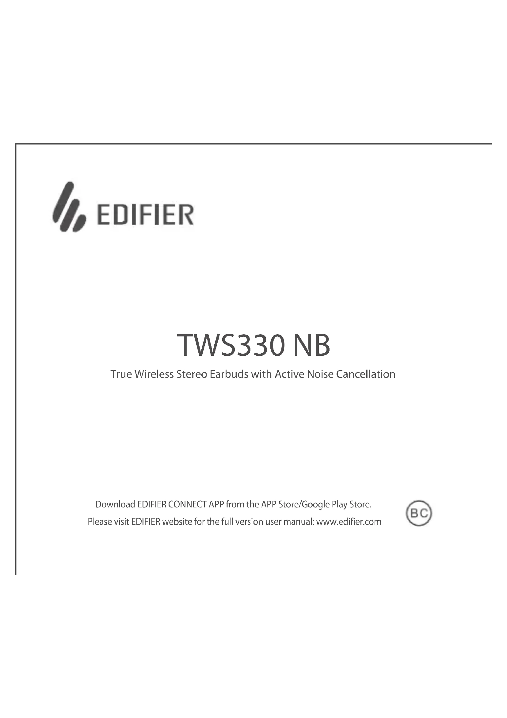 True Wireless Stereo Earbuds with Active Noise Cancellation TWS330 NB Download EDIFIER CONNECT APP from the APP Store/Google Play Store. Please visit EDIFIER website for the full version user manual: www.edifier.com1