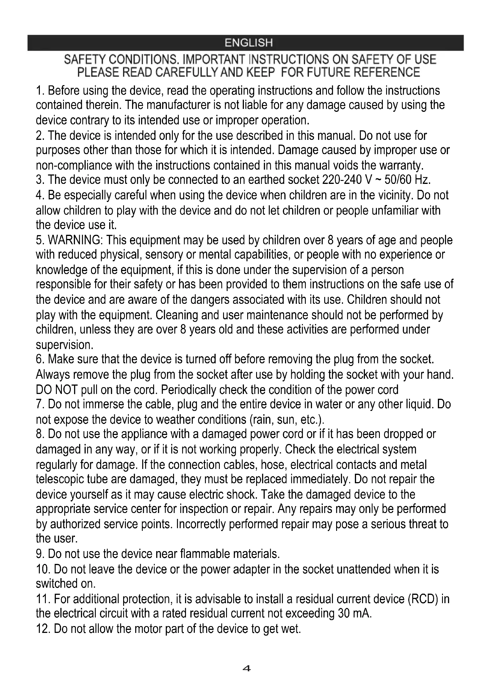 4. Be especially careful when using the device when children are in the vicinity. Do not