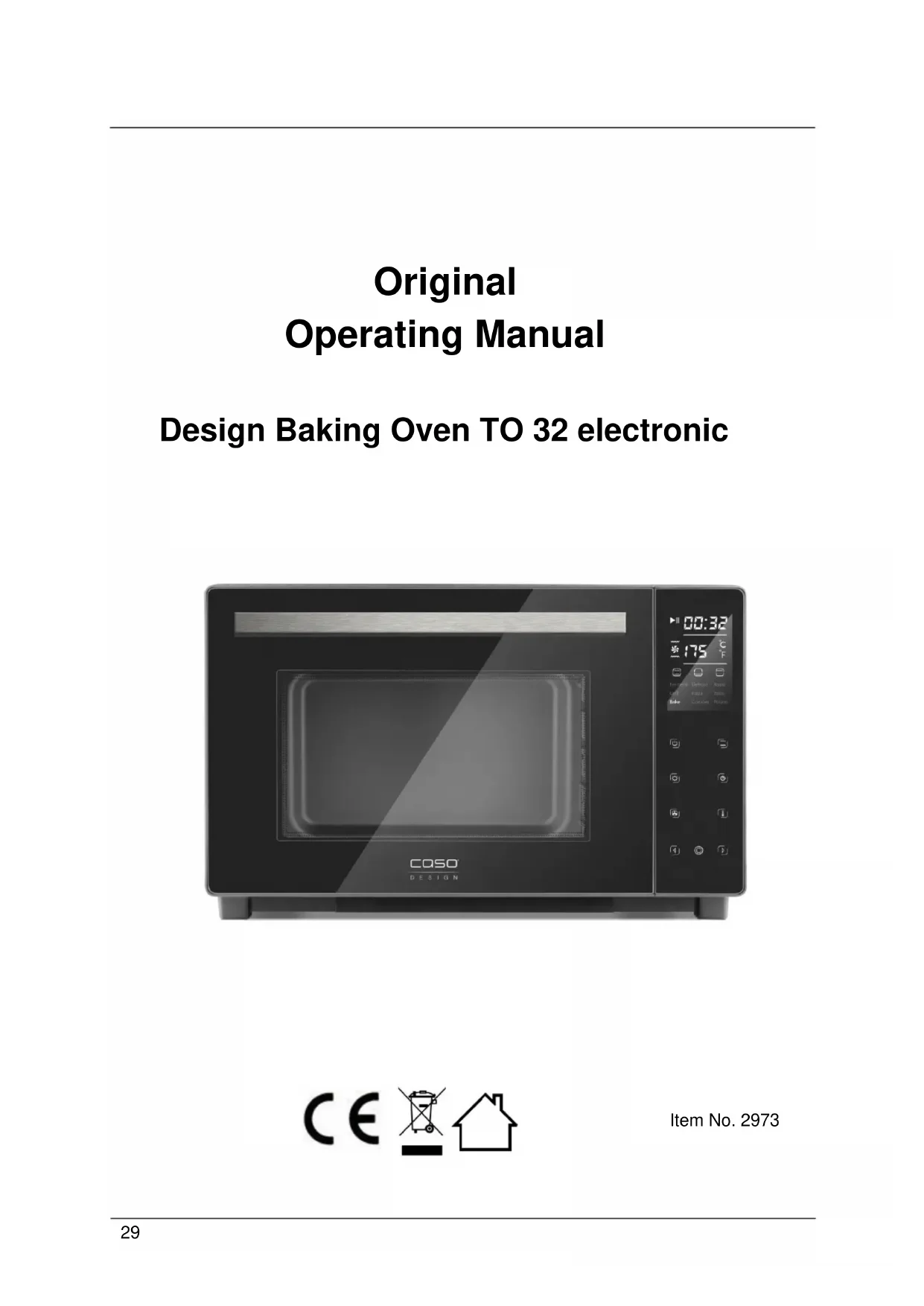 Download the instructions for your Oven in PDF format for free! Find your manual TO 32 electronic - CASO and take your electronic device back in hand. On this page are published all the documents necessary for the use of your device. TO 32 electronic by CASO.