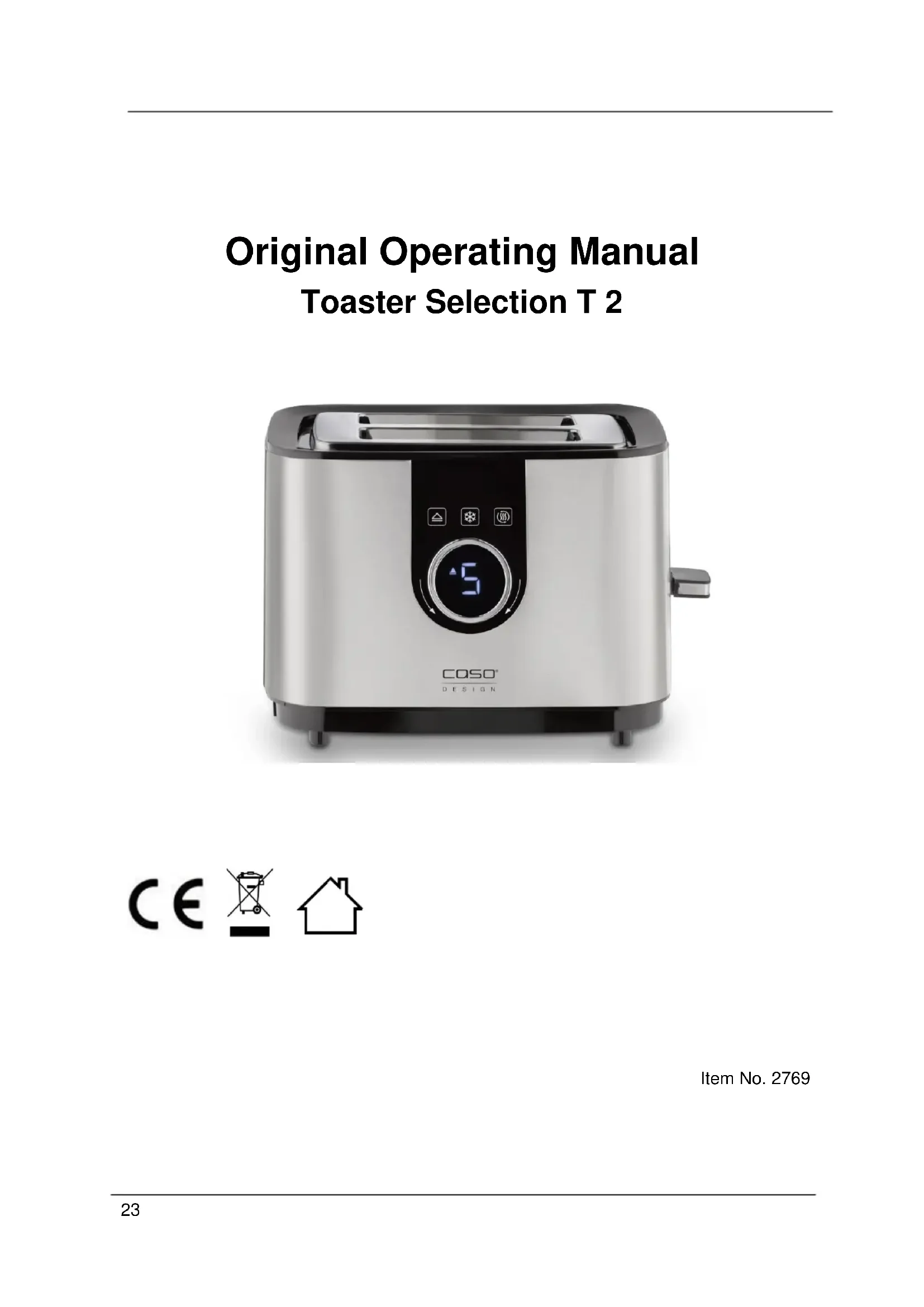 Download the instructions for your Toaster in PDF format for free! Find your manual Selection T2 - CASO and take your electronic device back in hand. On this page are published all the documents necessary for the use of your device. Selection T2 by CASO.