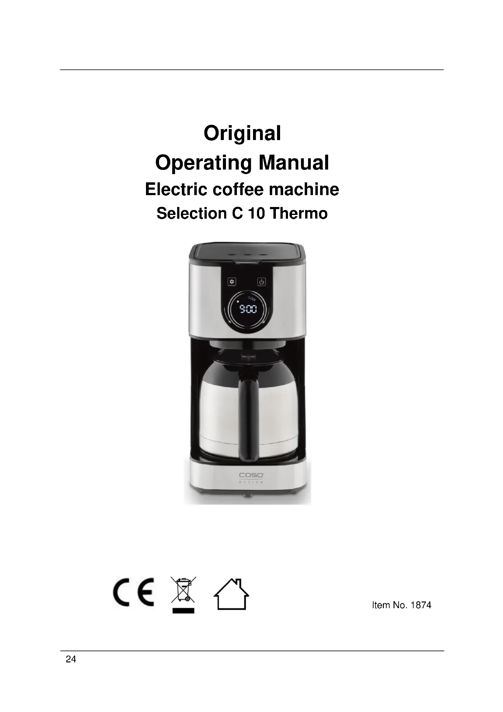 Download the instructions for your Coffee machine in PDF format for free! Find your manual Selection C 10 Thermo - CASO and take your electronic device back in hand. On this page are published all the documents necessary for the use of your device. Selection C 10 Thermo by CASO.