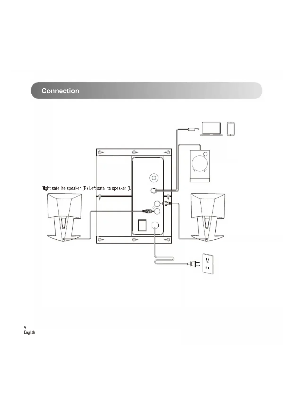 English Right satellite speaker (R) Left satellite speaker (L)Bluetooth connection