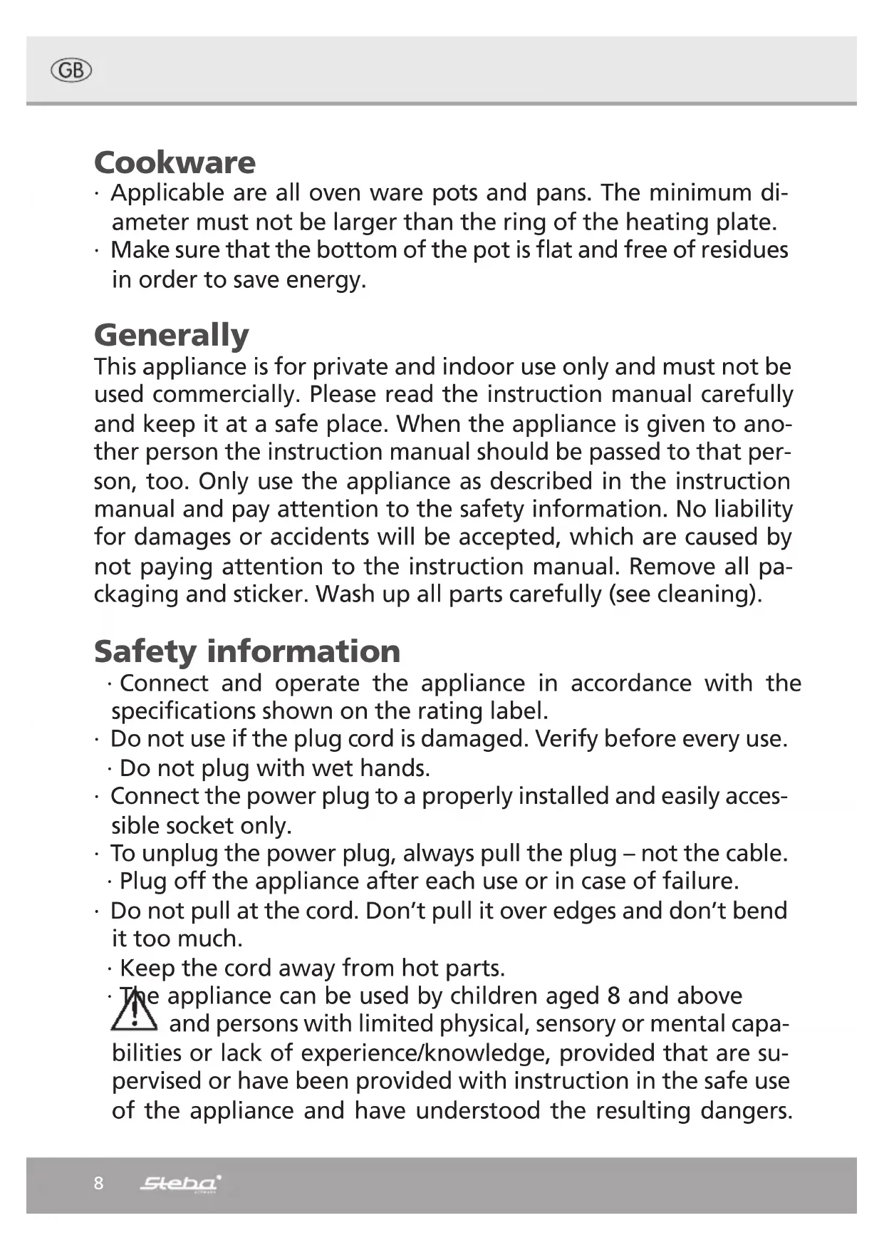KF 15 - Cooker STEBA - Free user manual and instructions