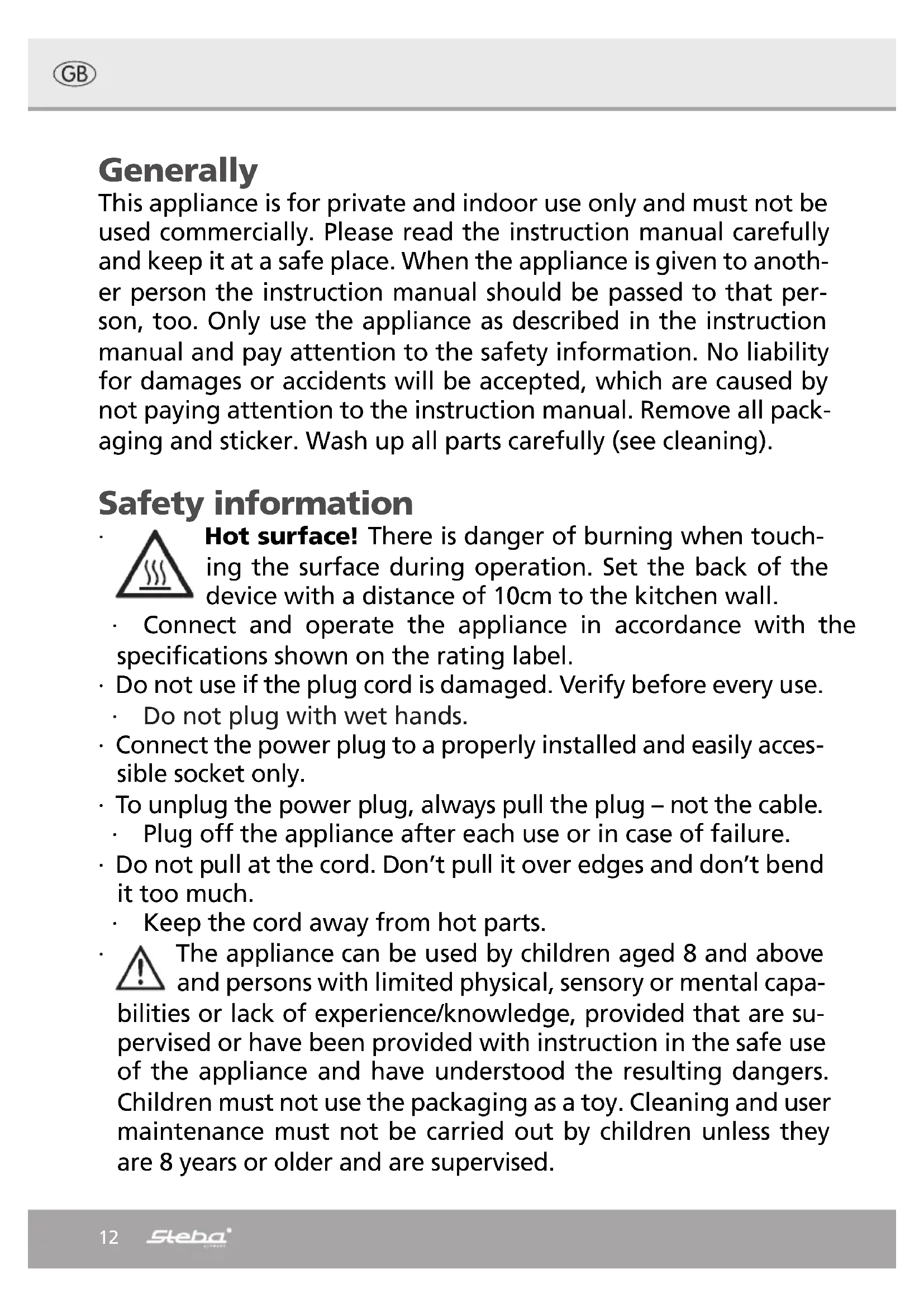HF 5000 XL - Deep fryer STEBA - Free user manual and instructions