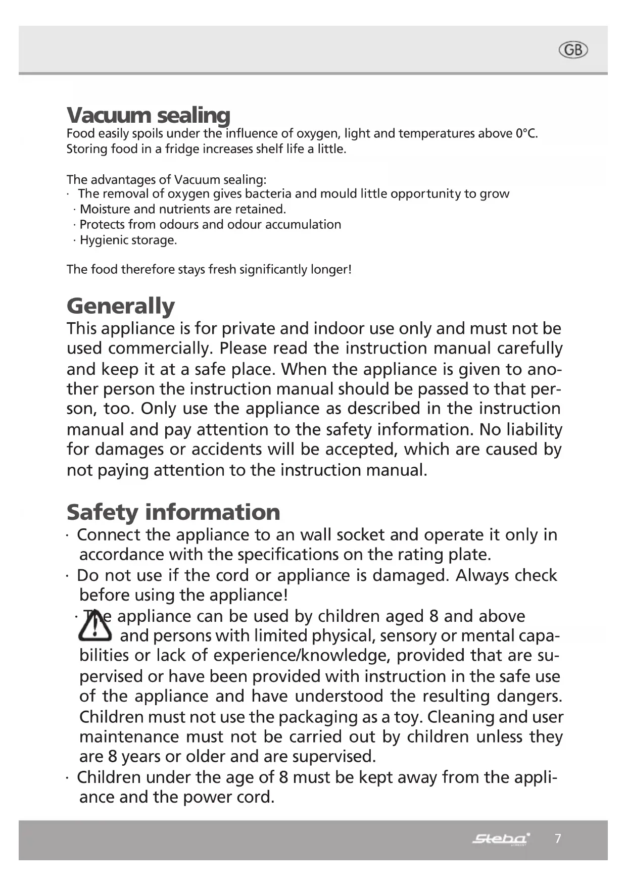 VK 5 - Vacuum packaging machines STEBA - Free user manual and instructions