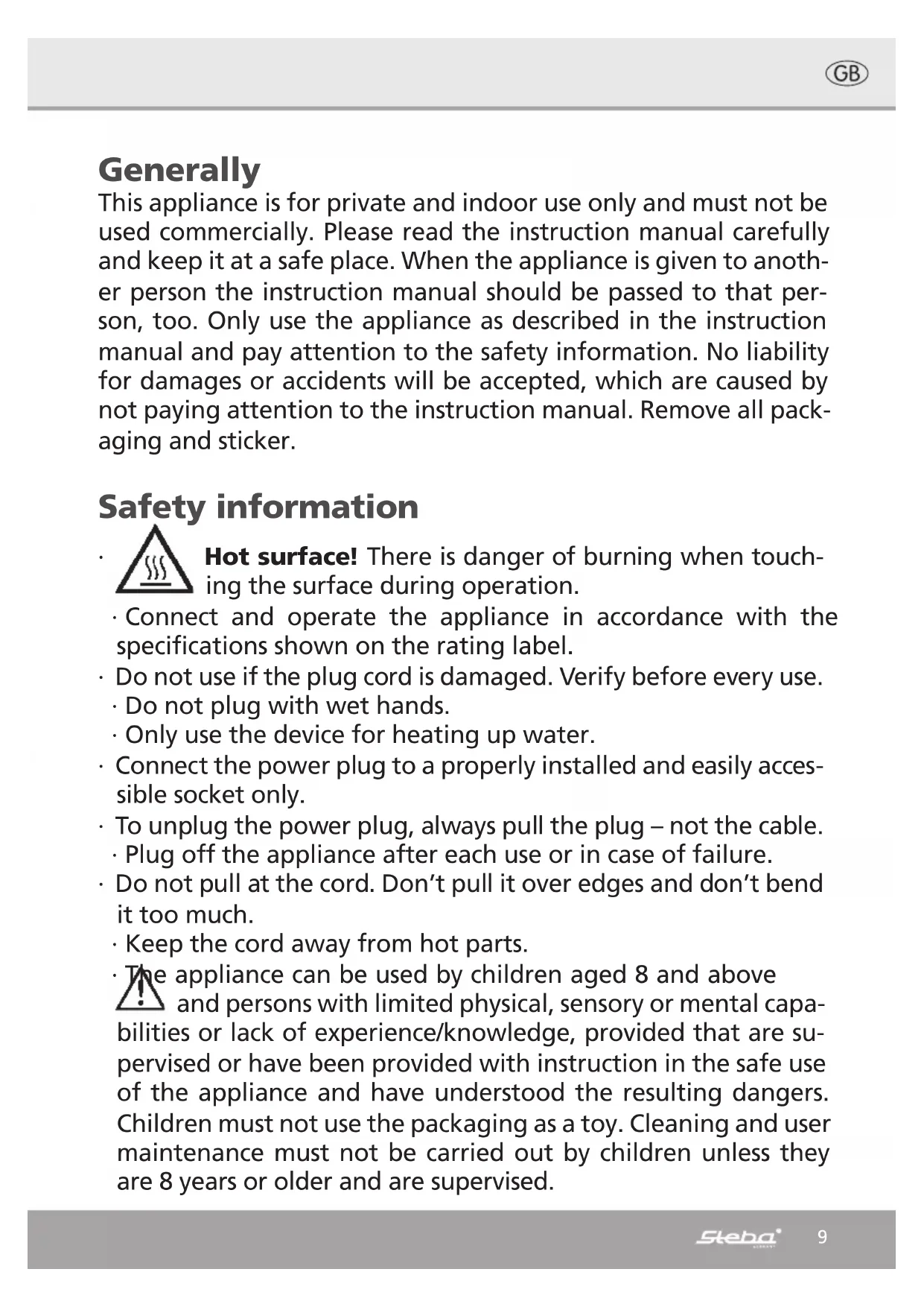 WK 20 - Kettle STEBA - Free user manual and instructions
