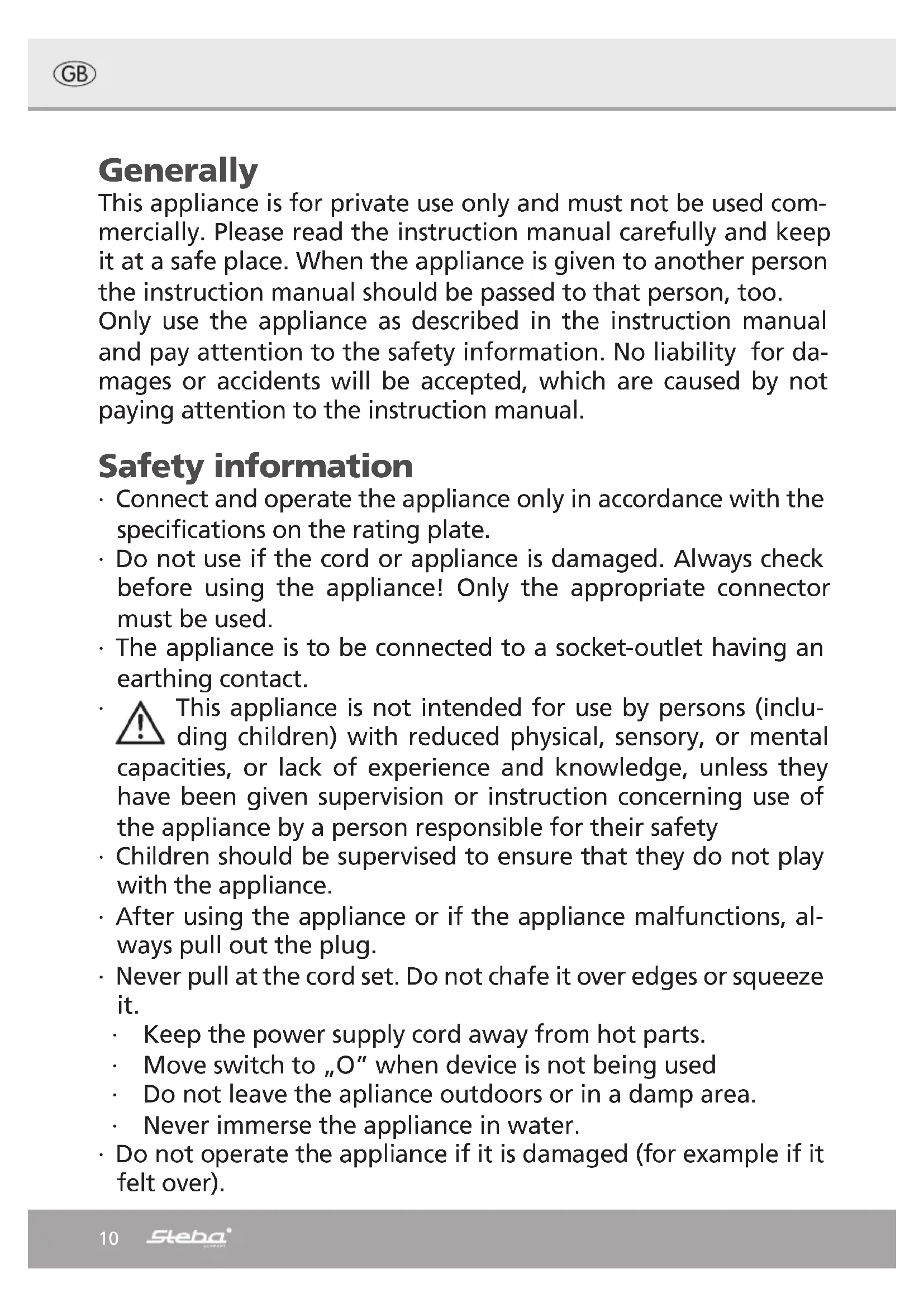 VT 5 - Fan STEBA - Free user manual and instructions