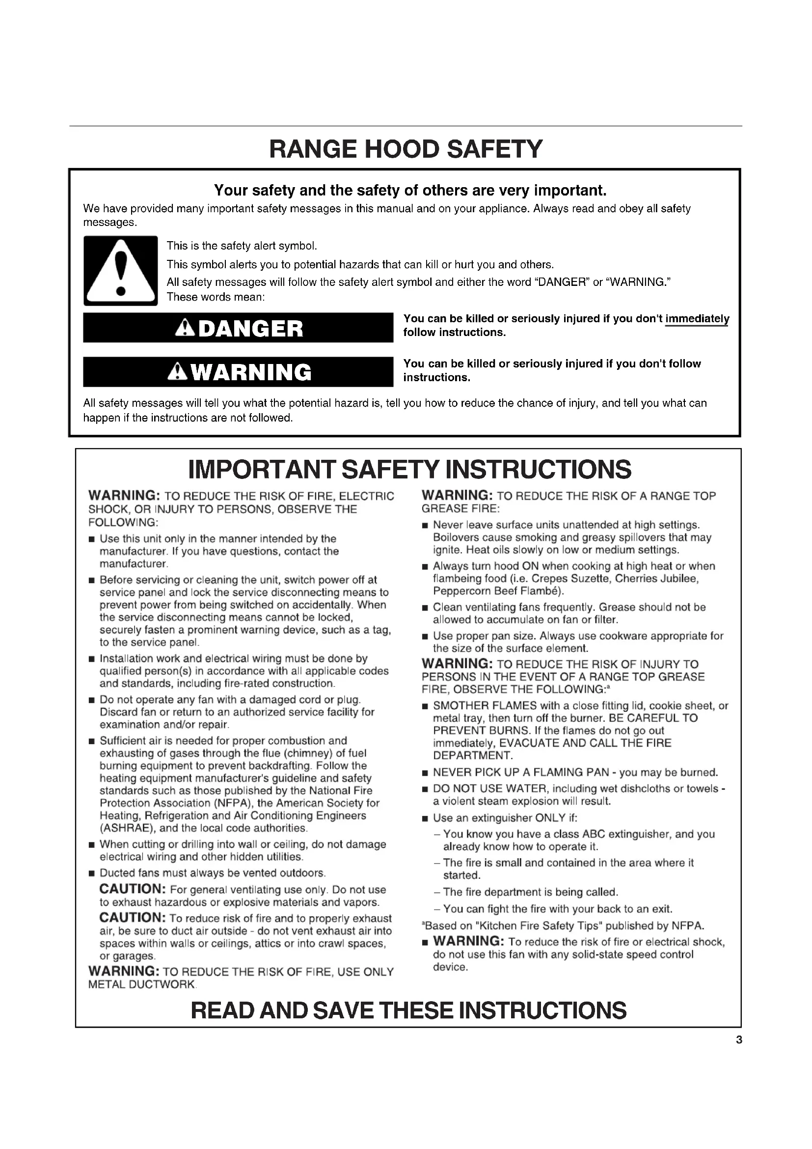 the “Range Hood Use” section. NOTE: To get the most effi cient use from your new range hood, read the “Range Hood Use” section.