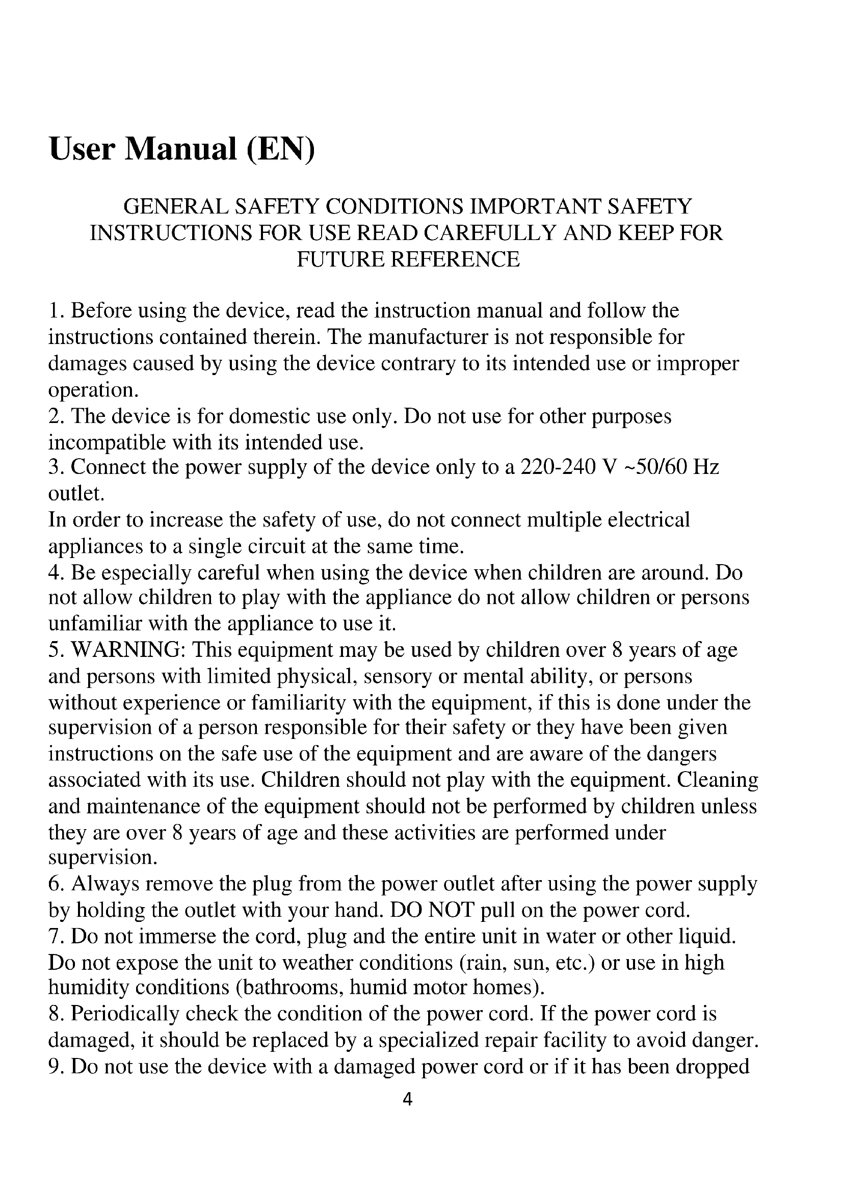 9. Do not use the device with a damaged power cord or if it has been dropped5
