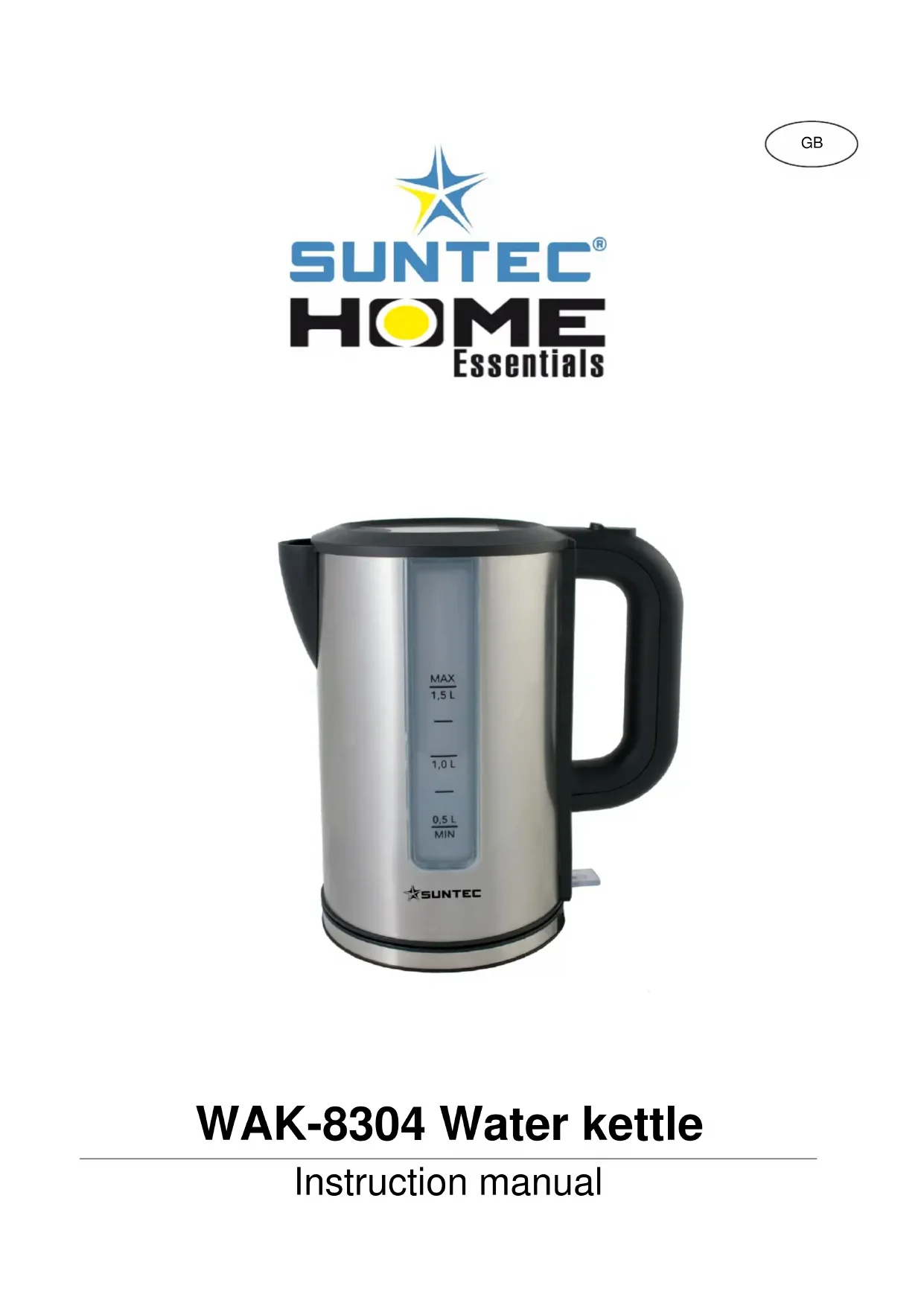 time by lifting the On/Off switch. Cleaning and Descaling Cleaning Before cleaning the water kettle, please make sure that the unit has been disconnected from the power supply and has cooled down. Rinse the water kettle with clear water. Rinse the unit with clear water only briefly, especially if the device is new or has not been used for a long period. Do not use any aggressive detergents or abrasives. Do not immerse the base or the water kettle in water or other liquids. Descaling Please use a commercially available descaling agent or vinegar to descale the appliance. Please follow the instructions for use of the descaler. Please rinse the unit twice with clear water. To protect the boiler from excessive calcification, please descale the appliance regularly. EC-Declaration of Conformity The unit complies with the essential health and safety requirements of the European Union. The EC declaration of conformity is the basis for the CE marking of this unit. With the publication of this manual, all previous are not valid. SUNTEC, SUNTEC Wellness, KLIMATRONIC and the Sun logo are registered trademarks. © 2017/01 SUNTEC WELLNESS GMBH.Note concerning protection of the environment This product must not be disposed of via normal household waste after its service life, but must be taken to a collection station for the recycling of electrical and electronic devices. The symbol on the product, the operating instructions or the packaging indicate such disposal procedures. The materials are recycable in accordance with their respective symbols. By means of re-use, material recycling or any other form of recycling old appliances you are making an important contribution to the protection of our environment. Please ask your local council where your nearest disposal station is located. Liability is excluded for all printing errors and omissions. I