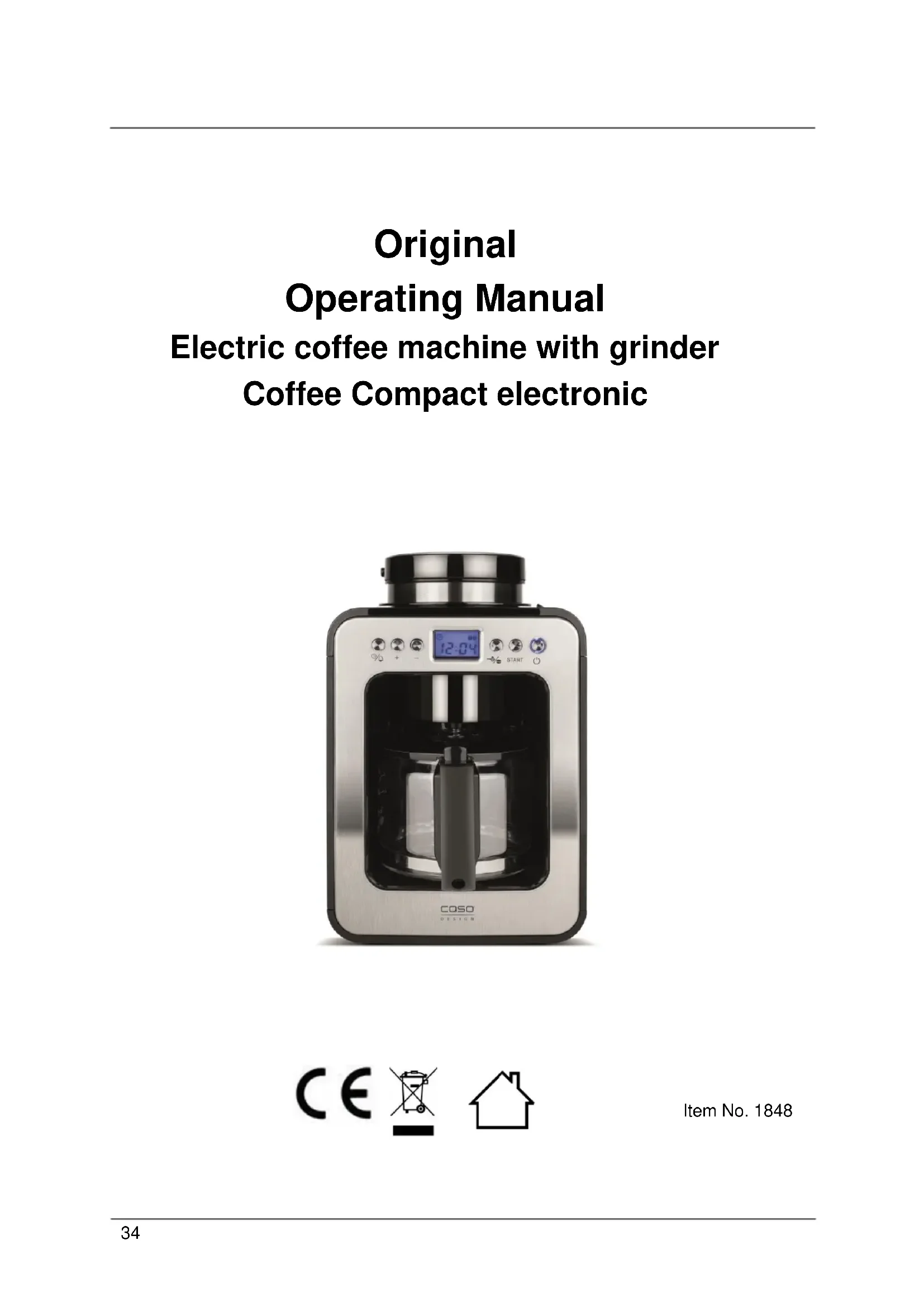 USER MANUAL Coffee Compact 1848 CASO