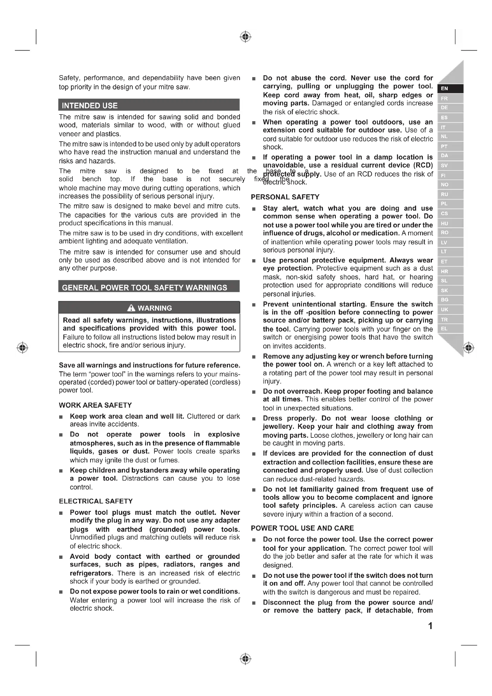 SAFETY INSTRUCTIONS FOR MITRE SAWS