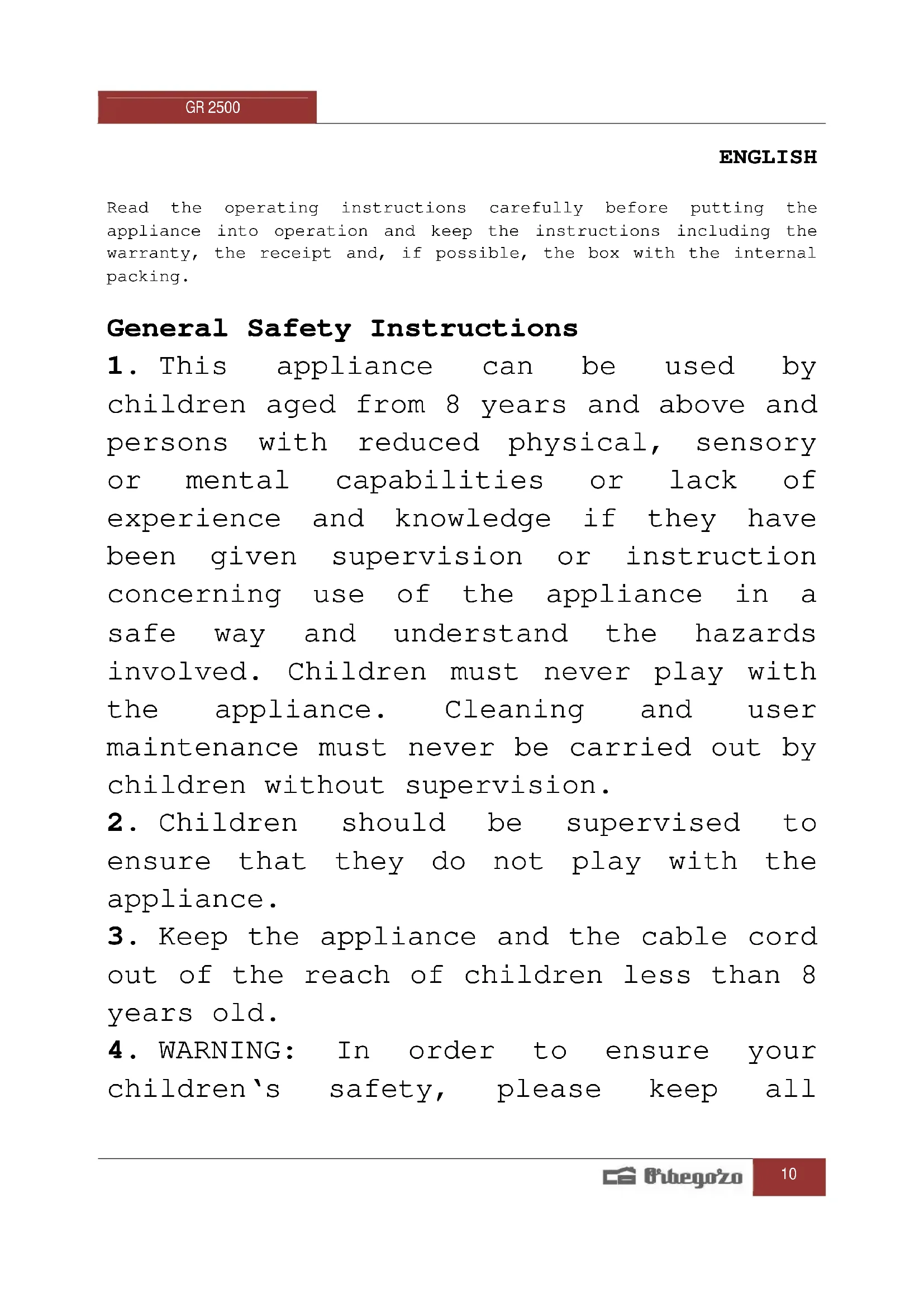GR 2500 - Grill plate Orbegozo - Free user manual and instructions