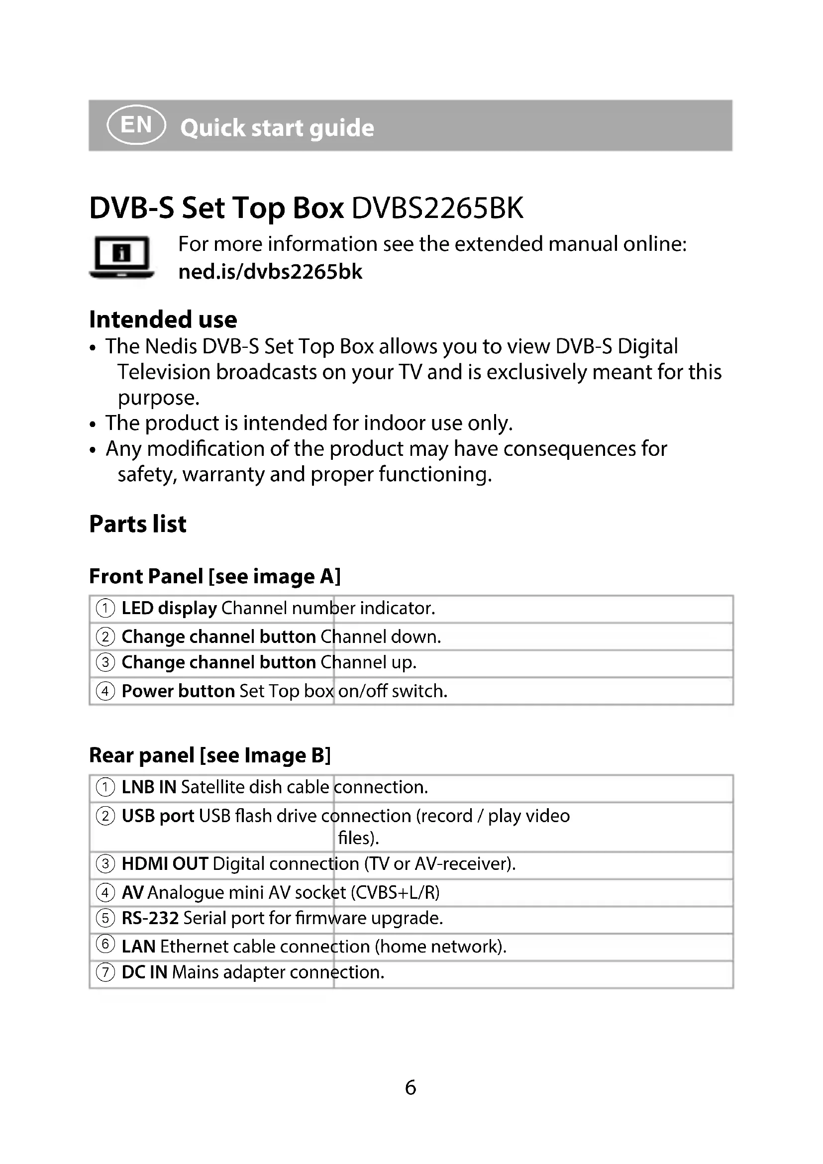 Find the device manual for free DVBS2265BK NEDIS in PDF.