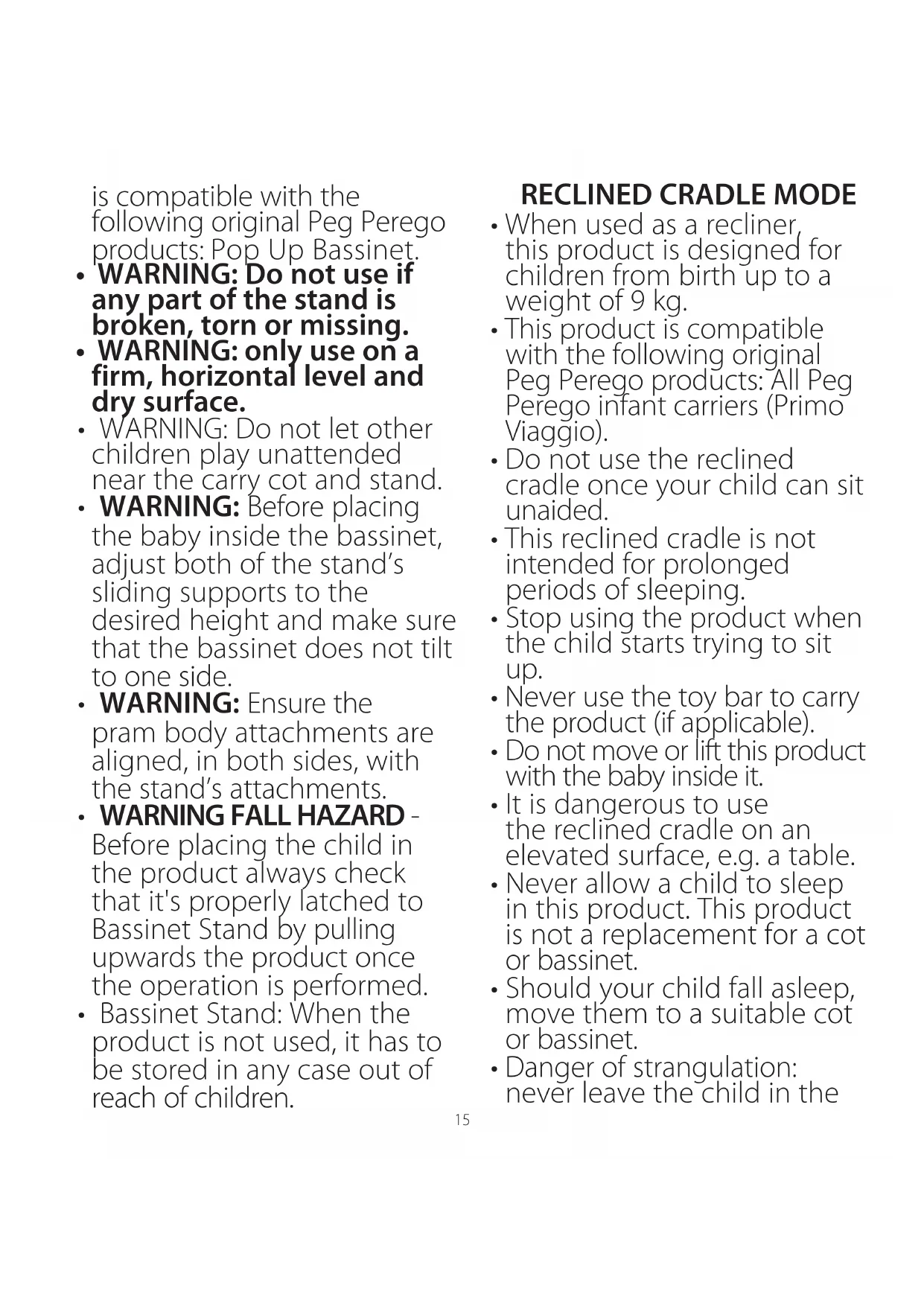 - WARNING FALL HAZARD - Before placing the child in the product always check that it's properly latched to Bassinet Stand by pulling upwards the product once the operation is performed.