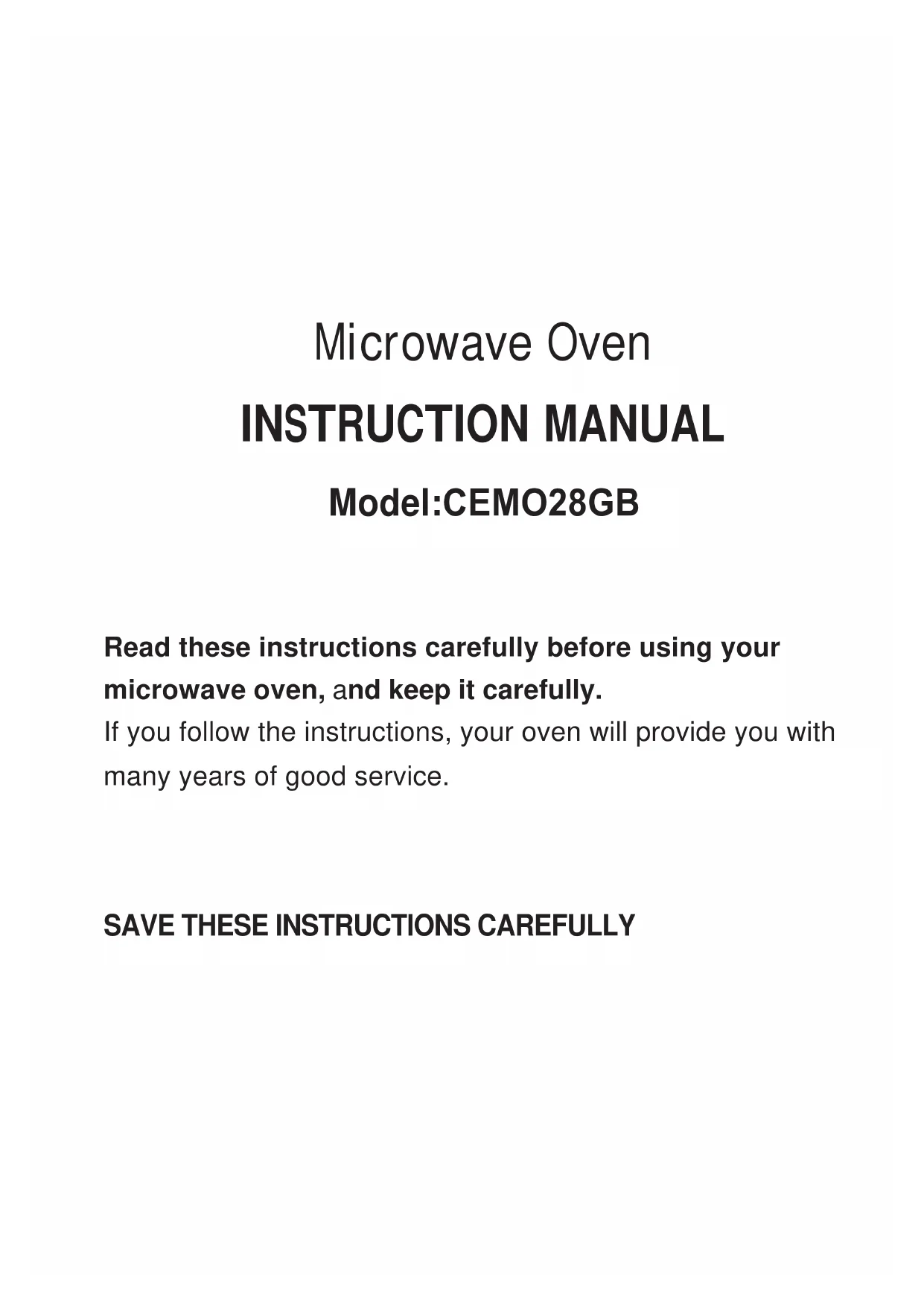 Read these instructions carefully before using your microwave oven, and keep it carefully. If you follow the instructions, your oven will provide you with many years of good service. INSTRUCTION MANUAL Microwave Oven Model:CEMO28GBEN-2 Important Safety Instructions To reduce the risk of fire, electric shock, personal injury and excessive exposure to microwave energy when using the device, observe a number of basic precautions, including which: