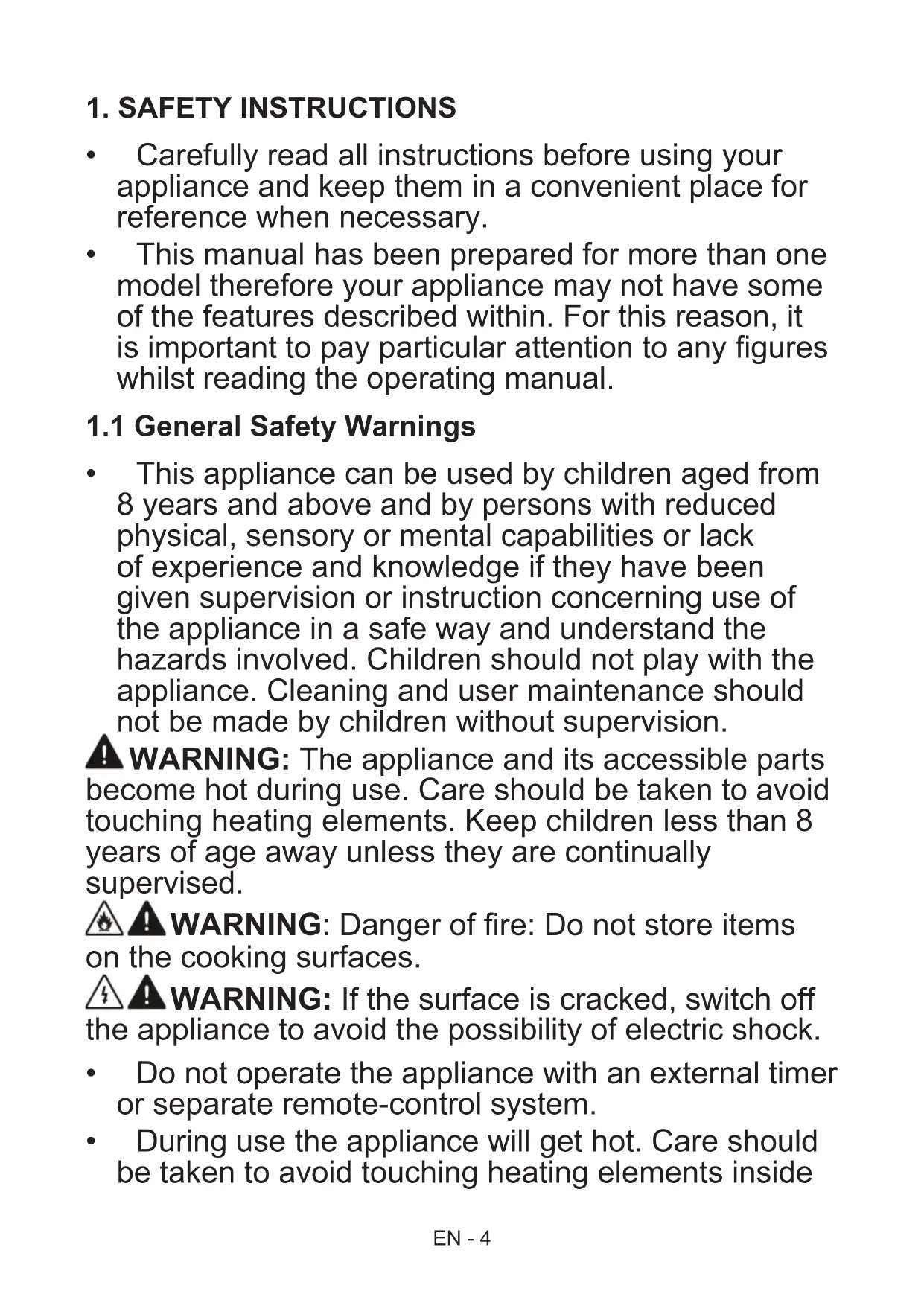 - During use the appliance will get hot. Care should be taken to avoid touching heating elements insideEN - 5 the oven.