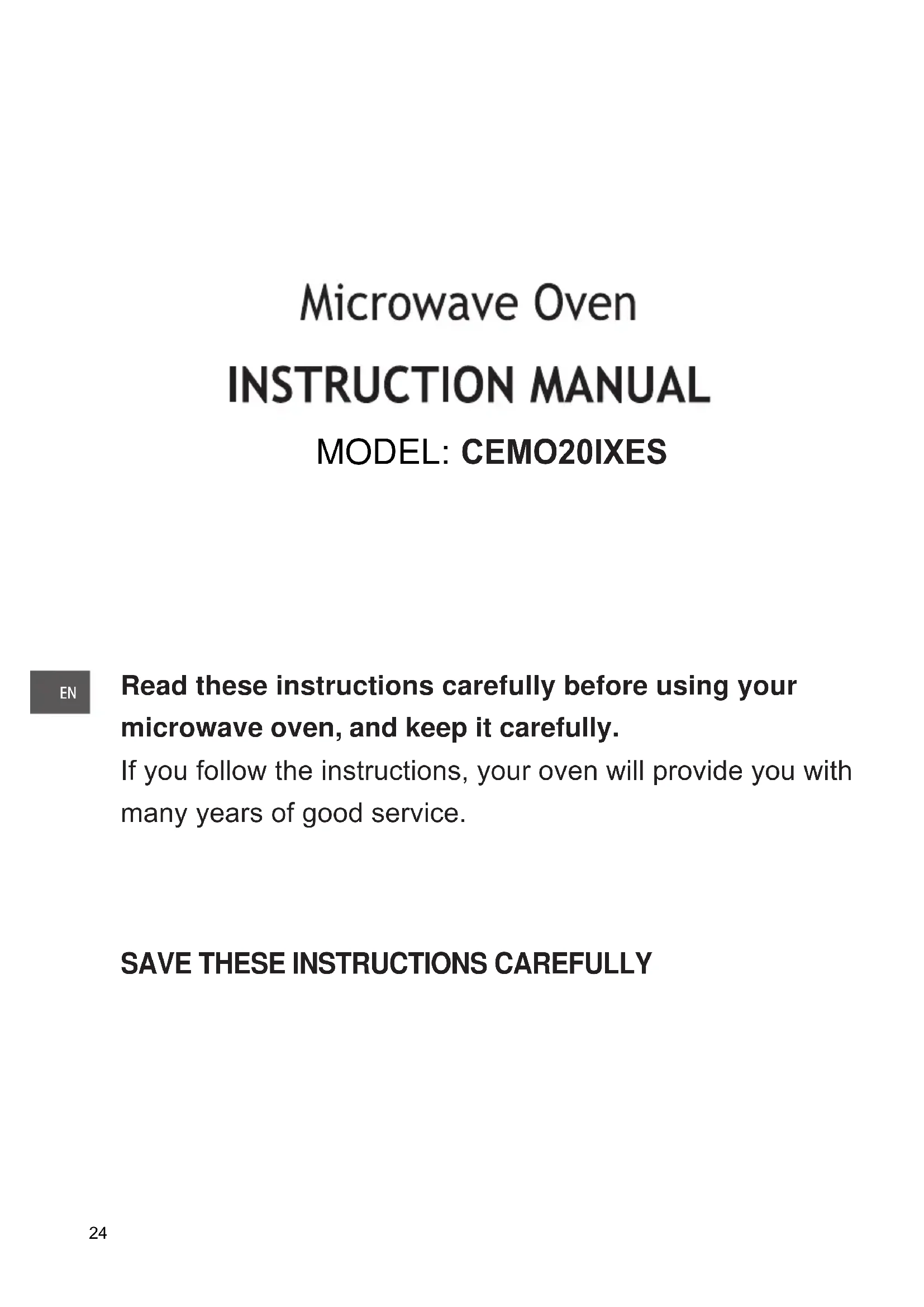 Read these instructions carefully before using your microwave oven, and keep it carefully. If you follow the instructions, your oven will provide you with many years of good service. MODEL: